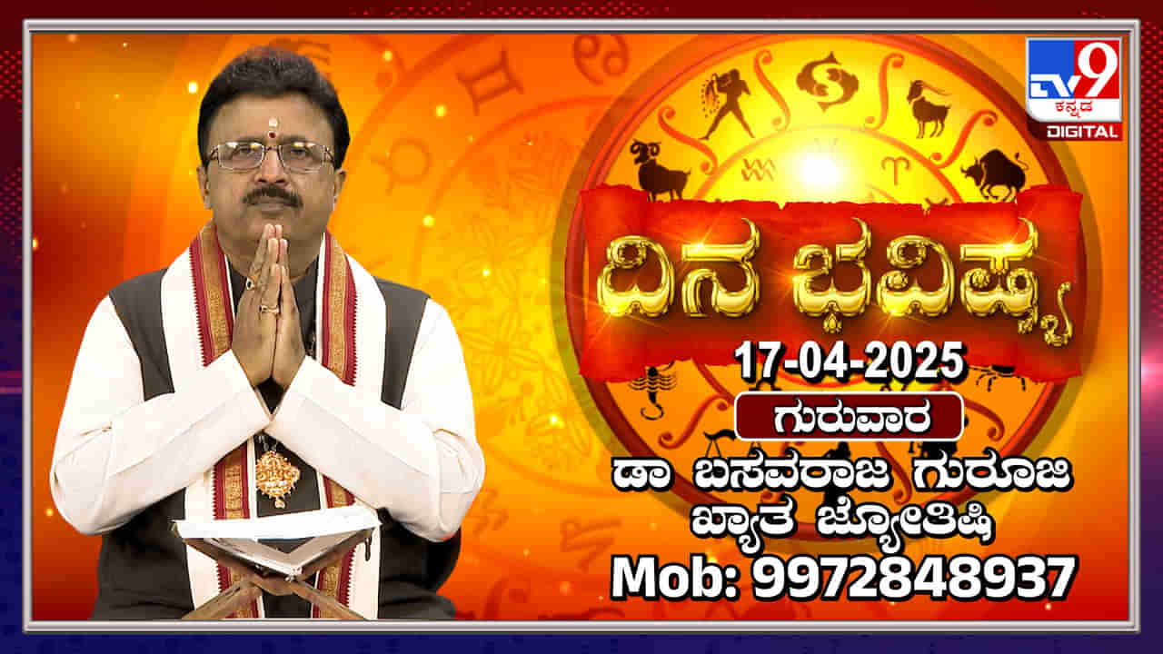 ಬೆಂಗಳೂರು, ಏಪ್ರಿಲ್ 17: ಈ ದಿನ ರಾಹುಕಾಲ 1:51 ರಿಂದ 3:24 ರವರೆಗೆ ಇದೆ. ಸರ್ವಸಿದ್ಧಿ ಕಾಲ 12:19 ರಿಂದ 1:52 ರವರೆಗೆ ಇದೆ. ರವಿ ಮೇಷ ರಾಶಿಯಲ್ಲೂ, ಚಂದ್ರ ವೃಶ್ಚಿಕ ರಾಶಿಯಲ್ಲೂ ಸಂಚಾರ ಮಾಡುತ್ತಿದೆ. ಮೇಷ ರಾಶಿಯವರಿಗೆ ಐದು ಗ್ರಹಗಳ ಶುಭಫಲ, ಆದಾಯದಲ್ಲಿ ಏರಿಕೆ ಮತ್ತು ವಾಹನಯೋಗ ಶುಭವಾಗಿದೆ. ವೃಷಭ ರಾಶಿಯವರಿಗೆ ಆರು ಗ್ರಹಗಳ ಶುಭಫಲ, ಆದರೆ ಆರ್ಥಿಕವಾಗಿ ಸ್ವಲ್ಪ ಪೋಸ್ಟ್ಪೋನ್ ಆಗುವ ಸಾಧ್ಯತೆ ಇದೆ. ಮಿಥುನ ರಾಶಿಯವರಿಗೆ ಏಳು ಗ್ರಹಗಳ ಶುಭಫಲ, ಆರ್ಥಿಕವಾಗಿ ಉತ್ತಮ, ಆದರೆ ಮಾತಿನಲ್ಲಿ ಸೌಮ್ಯತೆ ಅವಶ್ಯಕ. ಉಳಿದ ರಾಶಿಗಳಿಗೆ ಸಂಬಂಧಿಸಿದ ವಿವರಗಳನ್ನು ಗುರೂಜಿ ವಿಡಿಯೋದಲ್ಲಿ ತಿಳಿಸಿಕೊಟ್ಟಿದ್ದಾರೆ ನೋಡಿ.