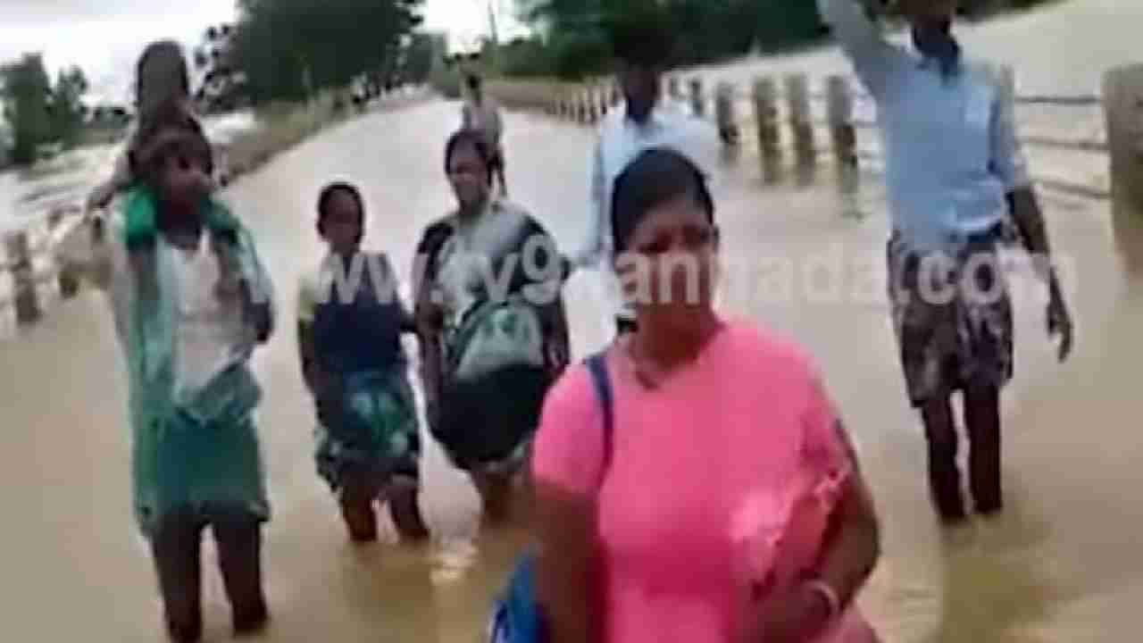 ಸೇತುವೆ ಮೇಲೆ ಹರಿಯುತ್ತಿರುವ ನೀರು; ಆಸ್ಪತ್ರೆಗೆ ತೆರಳಲು ಗರ್ಭಿಣಿಯ ಪರದಾಟ