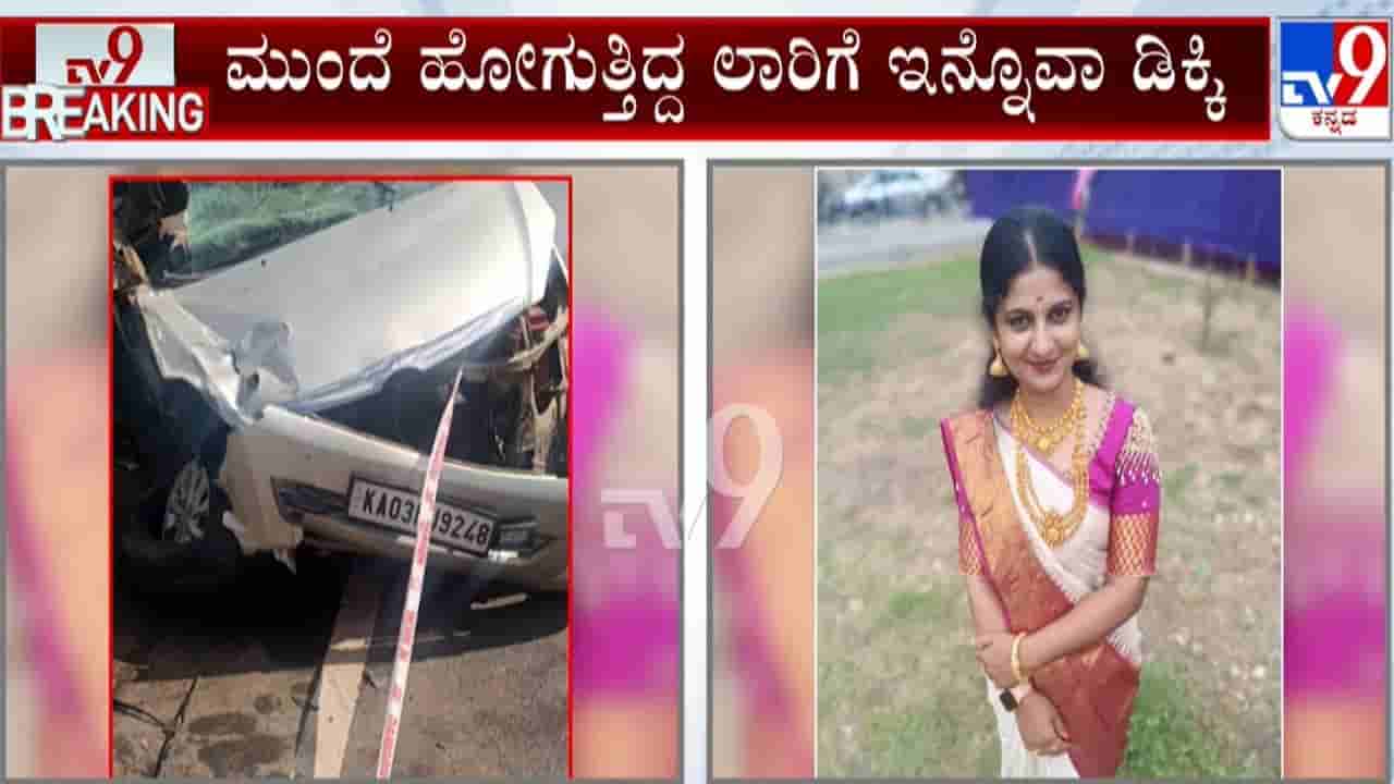 ಲಾರಿಗೆ ಹಿಂಬದಿಯಿಂದ ಕಾರು ಢಿಕ್ಕಿ: ಮಹಿಳೆ ಸಾವು, 6 ಜನರಿಗೆ ಗಾಯ