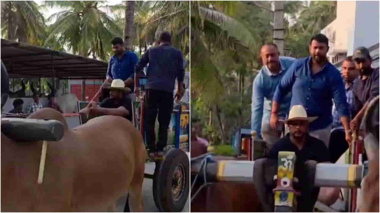 ಫಾರ್ಮ್ಹೌಸ್ನಲ್ಲಿ ಎತ್ತಿನಗಾಡಿ ಓಡಿಸಿದ ನಟ ದರ್ಶನ್; ದಾಸನ ಜಾಲಿ ಮೂಡ್