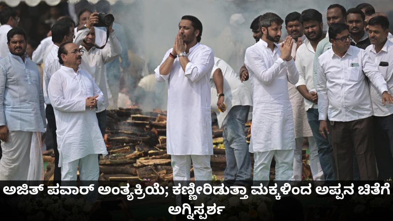 ಅಜಿತ್ ಪವಾರ್ ಅಂತ್ಯಕ್ರಿಯೆ; ಕಣ್ಣೀರಿಡುತ್ತಾ ಮಕ್ಕಳಿಂದ ಅಪ್ಪನ ಚಿತೆಗೆ ಅಗ್ನಿಸ್ಪರ್ಶ