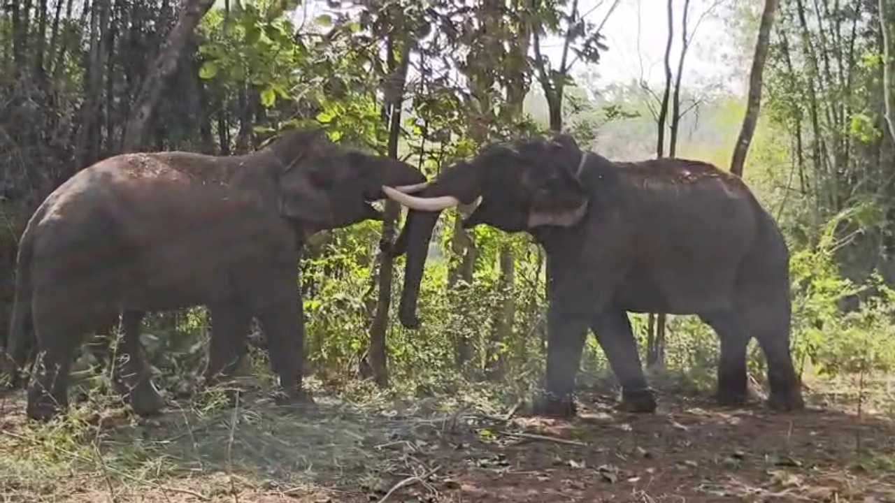 ಹಾಸನದಲ್ಲಿ ಕಾಡಾನೆಗಳ ತುಂಟಾಟ! ಪರಸ್ಪರ ಕೋರೆ ಮರ್ದಿಸಿದ ಗಜಪಡೆ