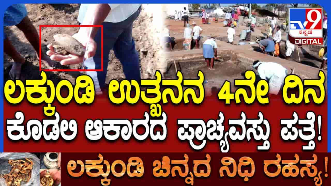 ಲಕ್ಕುಂಡಿ: 4ನೇ ದಿನದ ಉತ್ಖನನ ವೇಳೆ ಪುರಾತನ ಕಾಲದ ಕೊಡಲಿ ಆಕಾರದ ಅವಶೇಷ ಪತ್ತೆ