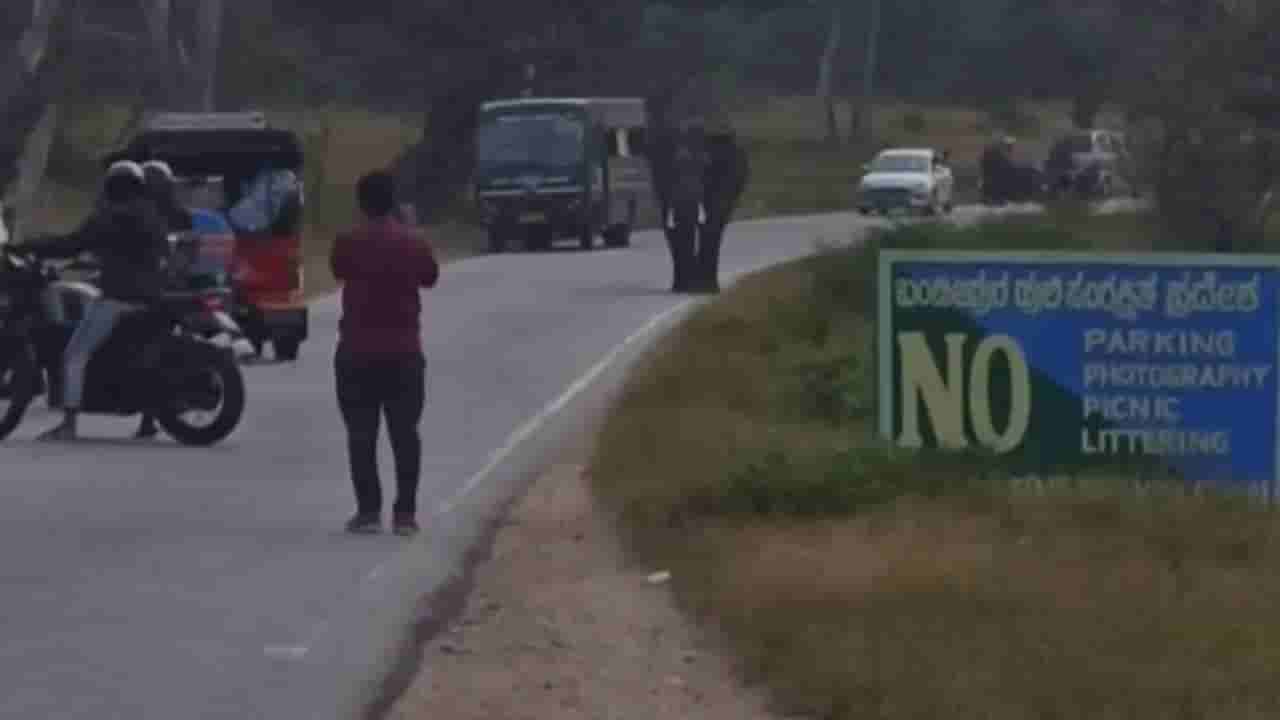 ಚಾಮರಾಜನಗರ, ಫೆಬ್ರವರಿ 19: ಬಂಡೀಪುರ-ಊಟಿ ರಸ್ತೆಯಲ್ಲಿ (Bandipur-Ooty Road) ಪ್ರವಾಸಿಗರ ಪುಂಡಾಟ ಮತ್ತೆ ಮುಂದುವರೆದಿದೆ. ಪ್ರವಾಸಿಗರು ಒಂಟಿ ಸಲಗದ (Elephant) ಮುಂದೆ ನಿಂತು ಫೋಟೊ ಕ್ಲಿಕ್ಕಿಸಿಕೊಳ್ಳುತ್ತಿರುವ ವಿಡಿಯೋ ವೈರಲ್ ಆಗಿದೆ. ಈ ಹಿಂದೆ ಕೂಡ ಓರ್ವ ಪ್ರವಾಸಿಗ ಒಂಟಿ ಸಲಗದ ಮುಂದೆ ಚೇಷ್ಟೆ ನಡೆಸಿ 25 ಸಾವಿರ ರೂ. ದಂಡ ಕಟ್ಟಿದ್ದನು. ಆದರೂ, ಬಗ್ಗದ ಕೆಲ ಪ್ರವಾಸಿಗರು ದಿನ ನಿತ್ಯ ಬಂಡೀಪುರ ಊಟಿ ರಸ್ತೆಯಲ್ಲಿ ಕಾಣಿಸಿ ಕೊಳ್ಳುವ ಕಾಡಾನೆಯ ಮುಂದೆ ಪುಂಡಾಟವಾಡುತ್ತಿದ್ದಾರೆ. ಇದೆ ರೀತಿ ಮುಂದುವರೆದರೆ ಪ್ರಾಣಹಾನಿ ಆಗುವ ಸಂಭವವಿದೆ. ಸದ್ಯ ಪ್ರವಾಸಿಗನ ಕುಚೇಷ್ಟೆಯ ವಿಡಿಯೋ ಸೋಶಿಯಲ್ ಮಿಡಿಯಾದಲ್ಲಿ ವೈರಲ್ ಆಗಿದೆ. ವೈರಲ್ ಆದ ವಿಡಿಯೋ ಆಧಾರದ ಮೇಲೆ ಅರಣ್ಯ ಸಿಬ್ಬಂದಿ ತನಿಖೆ ನಡೆಸುತ್ತಿದ್ದಾರೆ. ಚಾಮರಾಜನಗರ ಜಿಲ್ಲೆ ಗುಂಡ್ಲುಪೇಟೆ ತಾಲೂಕಿನ ಬಂಡೀಪುರ ಹುಲಿ ಸಂರಕ್ಷಿತ ಪ್ರದೇಶದಲ್ಲಿ ಘಟನೆ ನಡೆದಿದೆ.