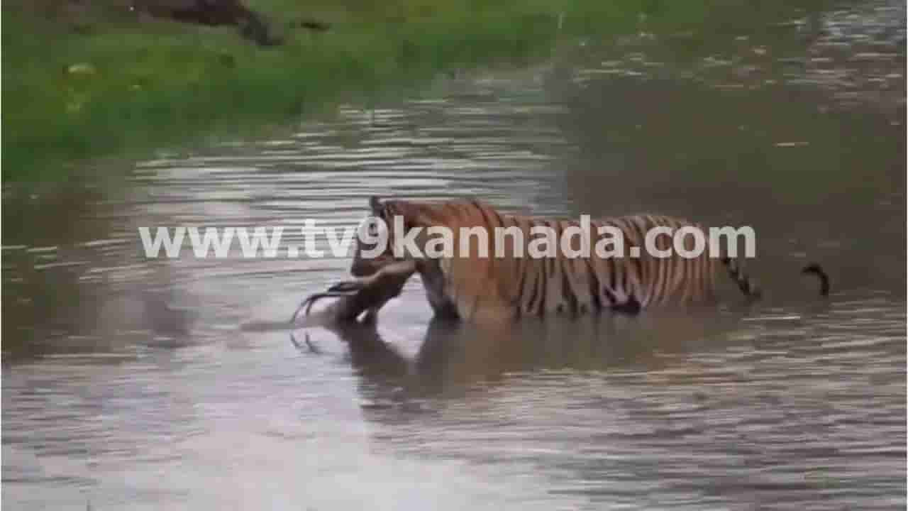 ನೀರಲ್ಲಿ ಧುಮುಕಿ ಜಿಂಕೆಯನ್ನು ಬೇಟೆಯಾಡಿದ ಹುಲಿ: ವಿಡಿಯೋ ನೋಡಿ