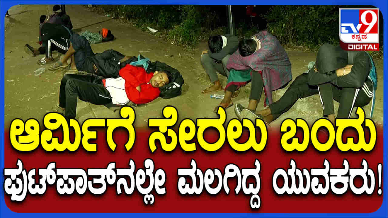 ಚಳಿಯನ್ನೂ ಲೆಕ್ಕಿಸದೆ ಮೈದಾನದಲ್ಲೇ ಮಲಗಿದ ಆರ್ಮಿ ಸೇರಲು ಬಂದ ಯುವಕರು!