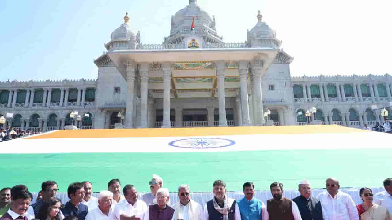 ಸುವರ್ಣಸೌಧದಲ್ಲಿ ಜಗತ್ತಿನ ಎರಡನೇ ಅತಿ ದೊಡ್ಡ ಖಾದಿ ತ್ರಿವರ್ಣ ಧ್ವಜ ಅನಾವರಣ
