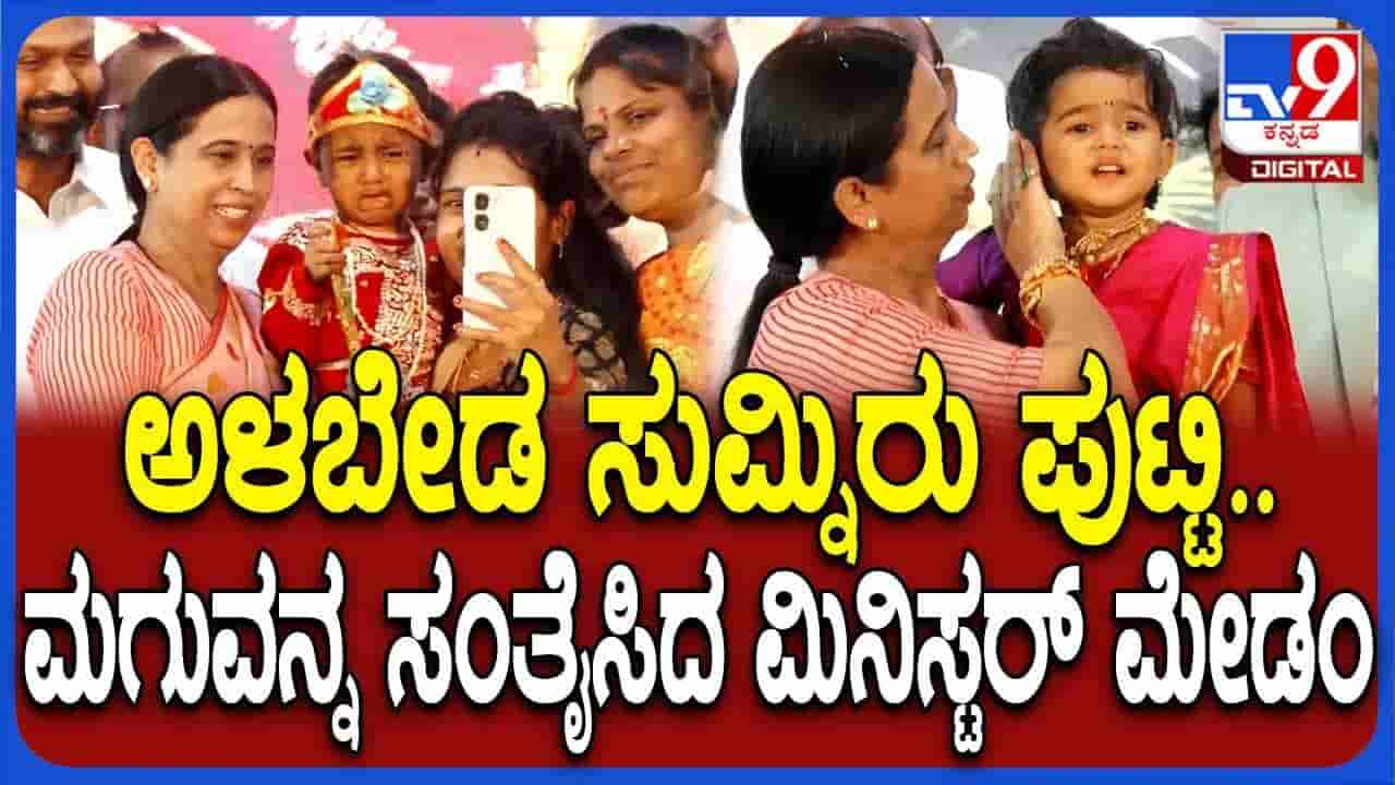ಬೆಳಗಾವಿ, ಸೆಪ್ಟೆಂಬರ್ 16: ಬೆಳಗಾವಿ ಜಿಲ್ಲಾಡಳಿತ, ಜಿಲ್ಲಾ ಪಂಚಾಯತ್ ಹಾಗೂ ಮಹಿಳಾ ಮತ್ತು ಮಕ್ಕಳ ಅಭಿವೃದ್ಧಿ ಇಲಾಖೆಯ ಸಂಯುಕ್ತ ಆಶ್ರಯದಲ್ಲಿ ಬೆಳಗಾವಿ ನಗರದ ಗಾಂಧಿ ಭವನದಲ್ಲಿ ಪೋಷಣ ಅಭಿಯಾಣದ (Poshan Abhiyan) ಮಾಸಾಚರಣೆ ಕಾರ್ಯಕ್ರಮವನ್ನು ಹಮ್ಮಿಕೊಳ್ಳಲಾಗಿತ್ತು. ಗರ್ಭಿಣಿಯರಿಗೆ ಸೀಮಂತ, ಮಕ್ಕಳ ವೇಷ ಭೂಷಣ ಸ್ಪರ್ಧೆ, ಅಕ್ಷರ ಅಭ್ಯಾಸ ಸೇರಿದಂತೆ ವಿವಿಧ ಚಟುವಟಿಕೆಗಳನ್ನು ಕೂಡಾ ಏರ್ಪಡಿಸಲಾಗಿತ್ತು. ಈ ಒಂದು ಕಾರ್ಯಕ್ರಮದಲ್ಲಿ ಭಾಗವಹಿಸಿದ್ದ ಸಚಿವೆ ಲಕ್ಷ್ಮೀ ಹೆಬ್ಬಾಳ್ಕರ್ ವೇಷಭೂಷಣ ತೊಟ್ಟ ಮಕ್ಕಳನ್ನು ನೋಡಿ ಫುಲ್ ಖುಷ್ ಆಗಿ ಪುಟಾಣಿಗಳನ್ನು ಎತ್ತಿಕೊಂಡು ಪೋಟೋಗೆ ಪೋಸ್ ಕೊಟ್ಟಿದ್ದಾರೆ.