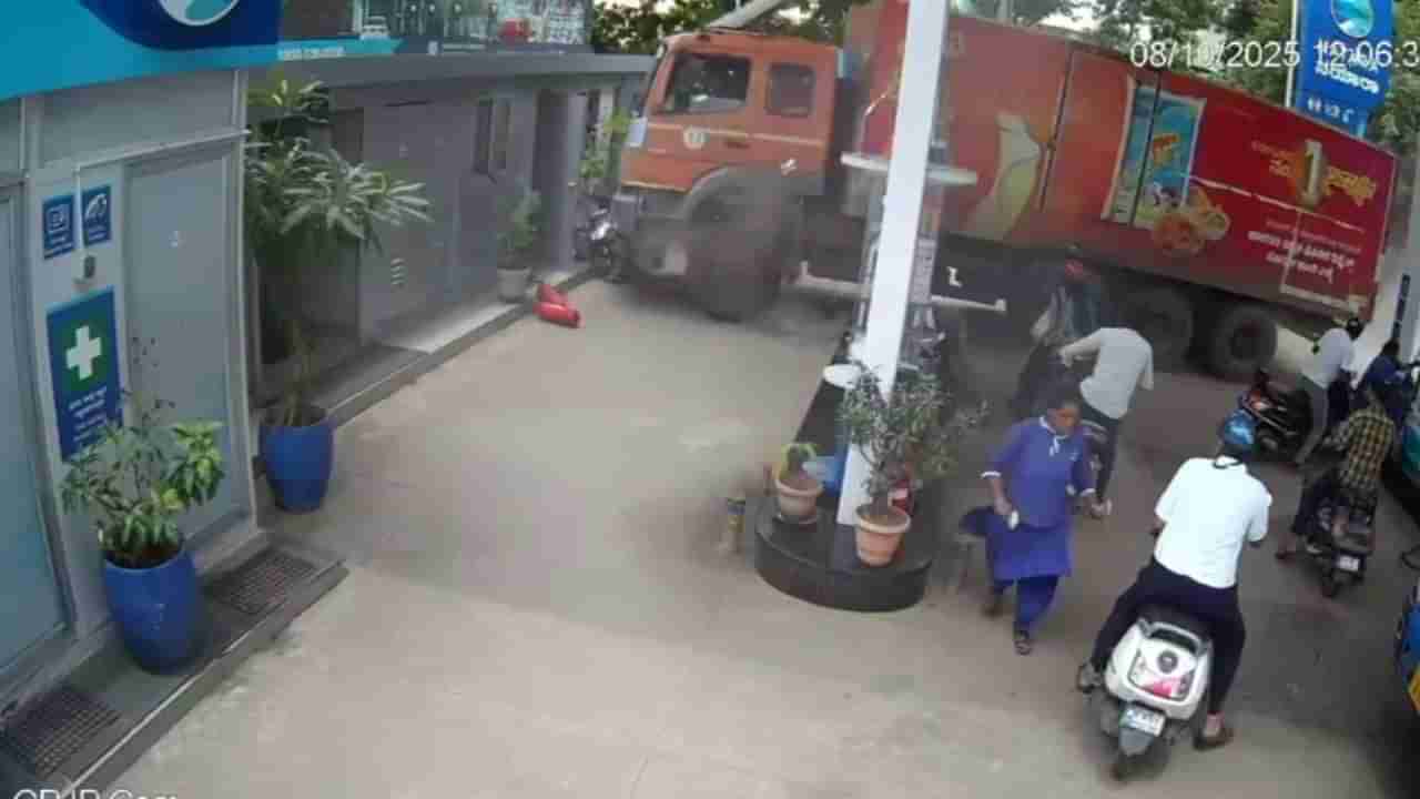 ಬೆಂಗಳೂರು: ಏಕಾಏಕಿ ಪೆಟ್ರೋಲ್ ಬಂಕ್ಗೆ ನುಗ್ಗಿದ ಕಂಟೇನರ್ ಲಾರಿ, ಭಯಾನಕ ದೃಶ್ಯ ಸಿಸಿ ಕ್ಯಾಮರಾದಲ್ಲಿ ಸೆರೆ