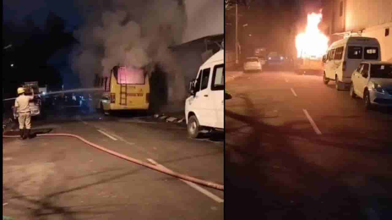 ಬೆಂಗಳೂರು: ನಿಂತಿದ್ದ ಖಾಸಗಿ ಶಾಲಾ ಬಸ್ಗೆ ಬೆಂಕಿ; ವ್ಯಕ್ತಿ ಅನುಮಾನಾಸ್ಪದ ಸಾವು