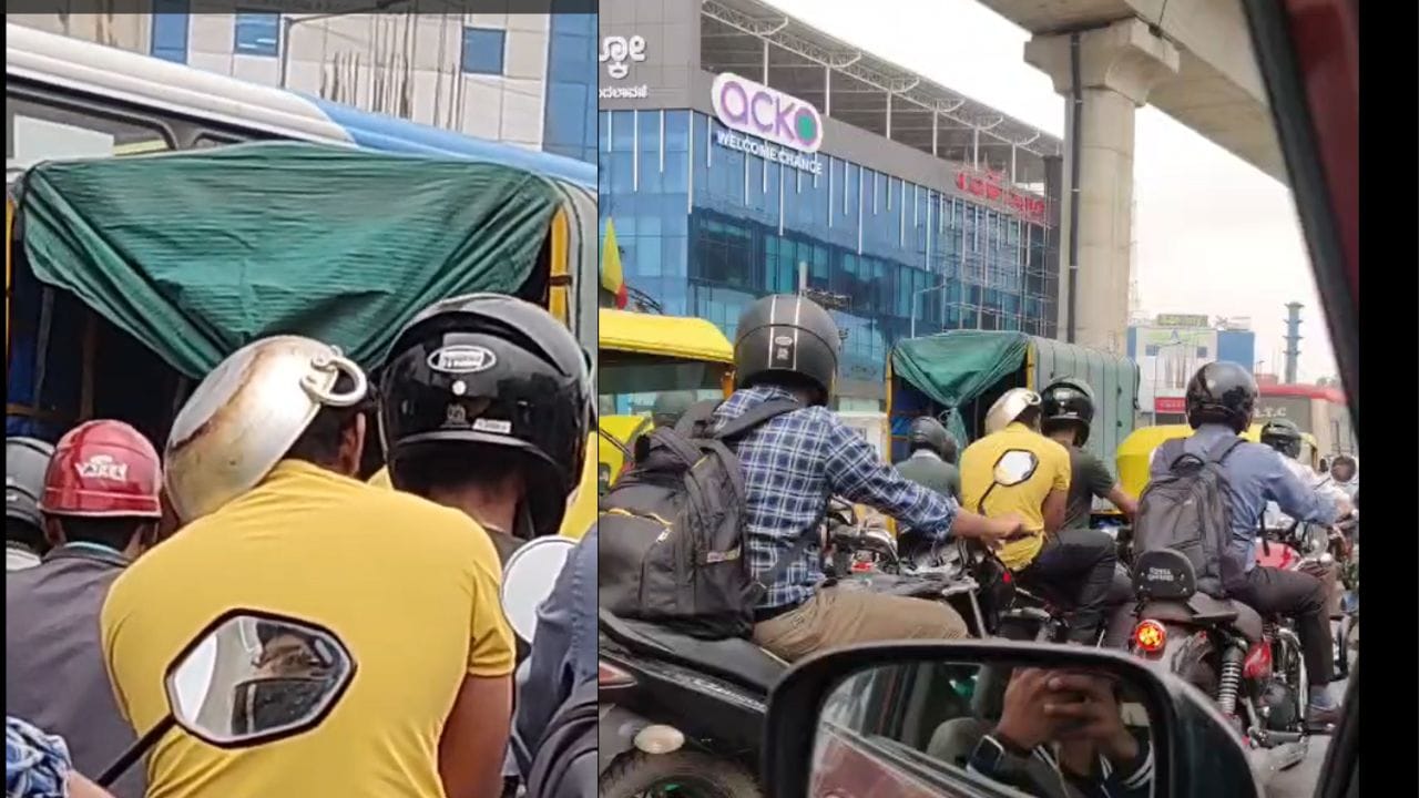 ಬೆಂಗಳೂರು, ಏ.18: ಸಿಲಿಕಾನ್ ಸಿಟಿಯ ಟ್ರಾಫಿಕ್ ನಡುವೆ ವಿಲಕ್ಷಣ ಘಟನೆಗಳಿಗೇನೂ ಕೊರತೆಯಿಲ್ಲ. ಆದರೆ ಈಗ ಹೊರರಾಜ್ಯದ ಯುವಕನೊಬ್ಬ ಮಾಡಿರುವ ‘ಹುಚ್ಚಾಟ’ ಸೋಷಿಯಲ್ ಮೀಡಿಯಾದಲ್ಲಿ ಭಾರಿ ಚರ್ಚೆಗೆ ಕಾರಣವಾಗಿದೆ. ಟ್ರಾಫಿಕ್ ಪೊಲೀಸರ ದಂಡದಿಂದ ತಪ್ಪಿಸಿಕೊಳ್ಳಲು ಅಥವಾ ಟ್ರೋಲ್ ಆಗಲು ಈ ಯುವಕ ಹೆಲ್ಮೆಟ್ ಬದಲಿಗೆ ಅಡುಗೆ ಮನೆಯಲ್ಲಿ ಬಳಸುವ ಬಾಂಡ್ಲಿಯನ್ನು (Frying Pan) ತಲೆ ಮೇಲೆ ಇಟ್ಟುಕೊಂಡು ಬೈಕ್ ಸವಾರಿ ಮಾಡಿದ್ದಾನೆ. ಬೆಂಗಳೂರಿನ ಎಚ್.ಎಸ್.ಆರ್ ಲೇಔಟ್ (HSR Layout) ಸಂಚಾರಿ ಪೊಲೀಸ್ ಠಾಣೆ ವ್ಯಾಪ್ತಿಯ ರೂಪೇನಾ ಅಗ್ರಹಾರ ಬಳಿ ಈ ಘಟನೆ ನಡೆದಿದೆ. ಕೆಎಲ್ 59 ಪಿ 7471 (KL 59 P 7471) ನೋಂದಣಿ ಸಂಖ್ಯೆಯ ಪಲ್ಸರ್ ಬೈಕ್ನಲ್ಲಿ ಕೇರಳ ಮೂಲದ ಯುವಕರು ಈ ಸಾಹಸ ಮಾಡಿದ್ದಾರೆ. ಬೈಕ್ ಚಲಾಯಿಸುತ್ತಿದ್ದ ಸವಾರ ಹೆಲ್ಮೆಟ್ ಧರಿಸಿದ್ದರೂ, ಹಿಂಬದಿ ಕುಳಿತಿದ್ದ ಯುವಕ ಕೈಯಿಂದ ಬಾಂಡ್ಲಿಯನ್ನು ತಲೆ ಮೇಲೆ ಹಿಡಿದುಕೊಂಡಿದ್ದ. ದೂರದಿಂದ ನೋಡಿದರೆ ಅದು ಕಪ್ಪು ಬಣ್ಣದ ಹೆಲ್ಮೆಟ್ನಂತೆಯೇ ಭಾಸವಾಗುತ್ತಿತ್ತು. ಇತರ ವಾಹನ ಸವಾರರು ಈ ದೃಶ್ಯವನ್ನು ಮೊಬೈಲ್ನಲ್ಲಿ ಸೆರೆಹಿಡಿದು ಜಾಲತಾಣಗಳಲ್ಲಿ ಹಂಚಿಕೊಂಡಿದ್ದಾರೆ. “ಪೀಕ್ ಬೆಂಗಳೂರು ಮೊಮೆಂಟ್” (Peak Bengaluru Moment) ಎಂಬ ಶೀರ್ಷಿಕೆಯಡಿ ಈ ವಿಡಿಯೋ ಸಖತ್ ವೈರಲ್ ಆಗಿದೆ. “ಬಾಂಡ್ಲಿ ಆಮ್ಲೆಟ್ ಹಾಕಲು ಕೆಲಸಕ್ಕೆ ಬರುತ್ತದೆಯೇ ಹೊರತು, ಅಪಘಾತವಾದಾಗ ತಲೆ ಉಳಿಸುವುದಿಲ್ಲ” ಎಂದು ನೆಟ್ಟಿಗರು ಈ ಯುವಕನ ಕಾಲೆಳೆದಿದ್ದಾರೆ.