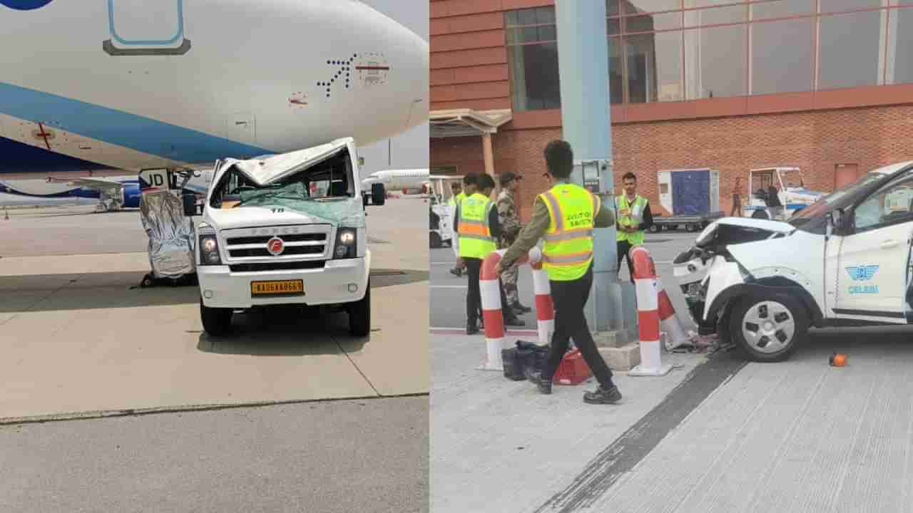 ಕೆಂಪೇಗೌಡ ಏರ್ಪೋರ್ಟ್ನಲ್ಲಿ ಎರಡೆರೆಡು ಅಪಘಾತ: ವಿಮಾನಕ್ಕೆ ಟಿಟಿ, ರನ್ ವೇನಲ್ಲಿರುವ ಕಂಬಕ್ಕೆ ಕಾರು ಡಿಕ್ಕಿ