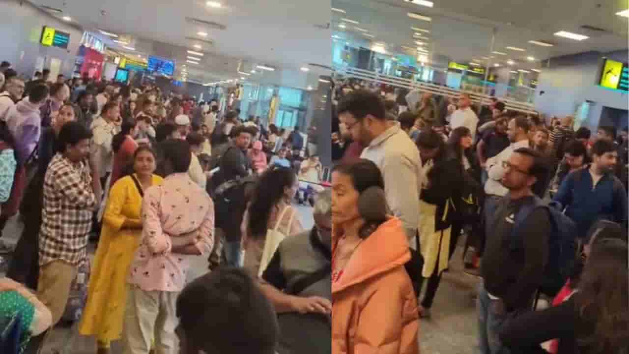 ತುಂಬಿ ತುಳುಕುತ್ತಿರುವ ಬೆಂಗಳೂರು ಏರ್ಪೋರ್ಟ್ ಟರ್ಮಿನಲ್ 1: ಇಂಡಿಗೋ ವಿಮಾನ ಸಂಚಾರದಲ್ಲಿ ವ್ಯತ್ಯಯದಿಂದ ಪ್ರಯಾಣಿಕರ ಪರದಾಟ