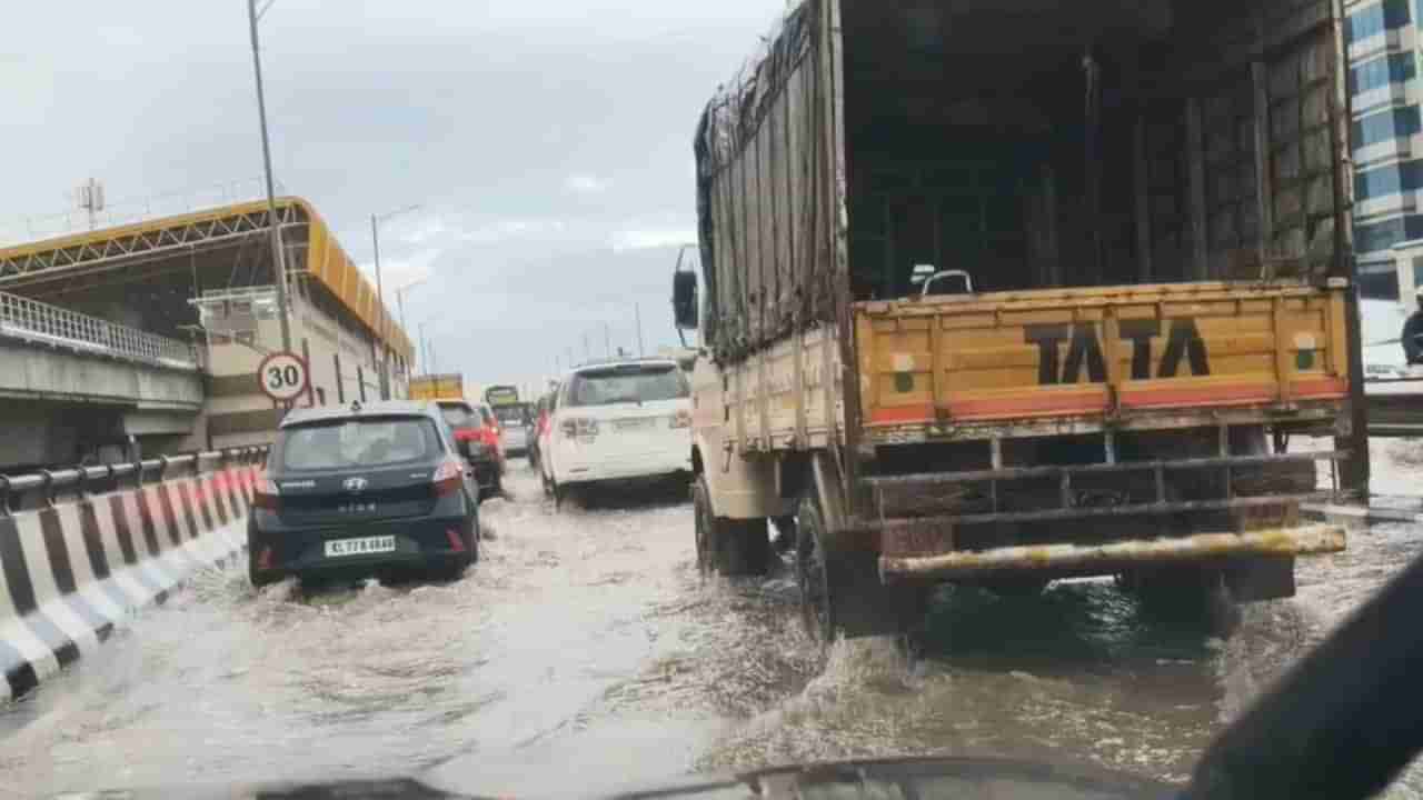 ಬೆಂಗಳೂರು: ಧಾರಾಕಾರ ಮಳೆಗೆ ಕೆರೆಯಂತಾದ ರಸ್ತೆ, ಸವಾರರು ಪರದಾಟ