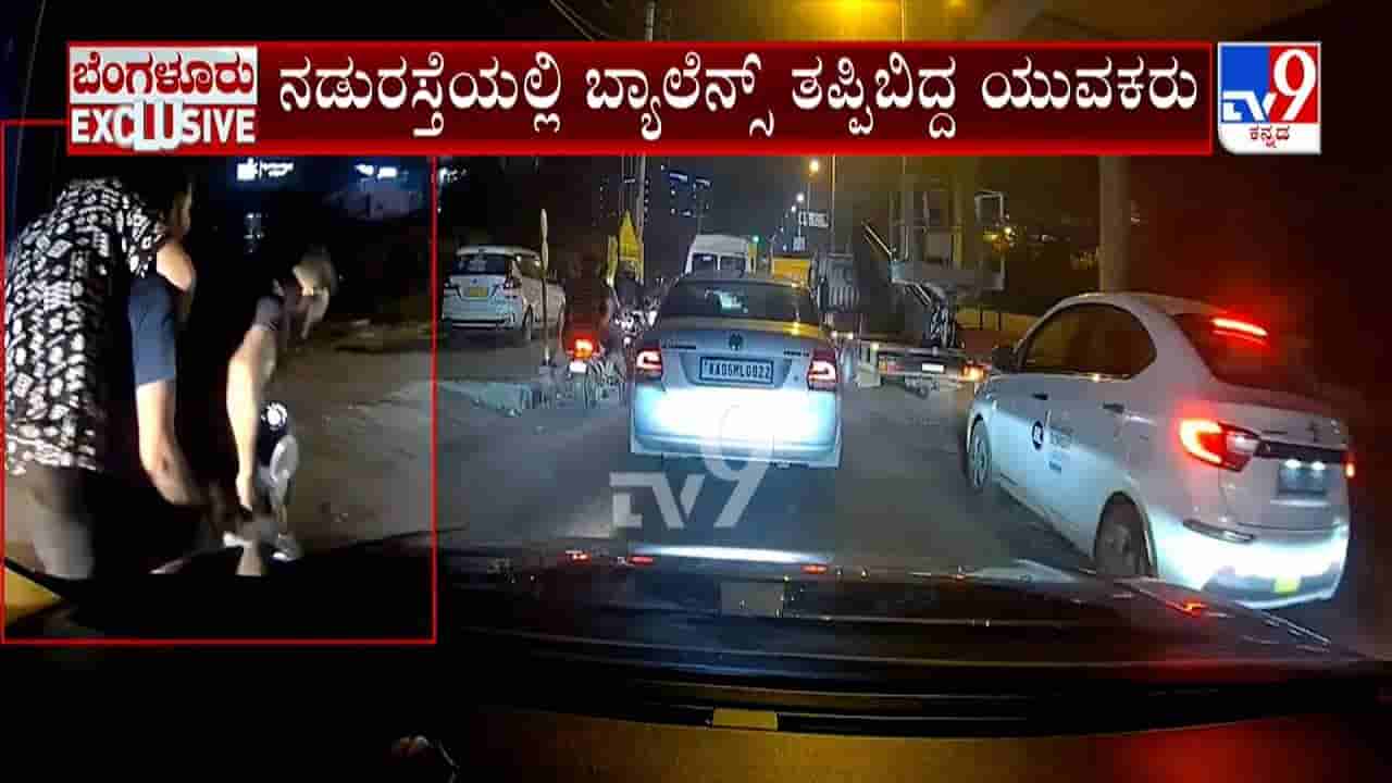 ಬೆಂಗಳೂರು, ಸೆಪ್ಟೆಂಬರ್ 14: ಟ್ರಾಫಿಕ್ ನಿಯಮಗಳ (Traffic Rules) ಪ್ರಕಾರ ಕುಡಿದು ವಾಹನ ಚಲಾಯಿಸುವಂತಿಲ್ಲ. ಹೀಗಿರುವಾಗ ತ್ರಿಬಲ್ ರೈಡಿಂಗ್ ಮಾತ್ರವಲ್ಲದೆ ಕುಡಿದು ಬೈಕ್ ಚಲಾಯಿಸಿದ್ದಾರೆ. ಕುಡಿದ ಮತ್ತಿನಲ್ಲು ಯದ್ವಾ ತದ್ವಾ ಬೈಕ್ ಓಡಿಸಿದ ಪರಿಣಾಮ ಬೈಕ್ನಲ್ಲಿದ್ದ ಮೂವರು ಯುವಕರು ಬ್ಯಾಲೆನ್ಸ್ ತಪ್ಪಿ ಬಿದ್ದಿದ್ದಾರೆ. ಯಾಕೆ ಹೀಗೆ ಕುಡಿದು ರಸ್ತೆಯಲ್ಲಿ ಗಾಡಿ ಓಡಿಸ್ತೀರಿ ಎಂದು ಪ್ರಶ್ನಿಸಿದ ಕಾರ್ ಚಾಲಕನ ಜೊತೆಗೂ ಈ ಕಿಡಿಗೇಡಿ ಯುವಕರು ಗಲಾಟೆ ಮಾಡಿದ್ದಾರೆ. ಮಾರತ್ತಹಳ್ಳಿಯ ಔಟರ್ರಿಂಗ್ ರೋಡ್ನಲ್ಲಿ ಈ ಘಟನೆ ನಡೆದಿದ್ದು, ಈ ಸಂಪೂರ್ಣ ದೃಶ್ಯ ಕಾರಿನ ಡ್ಯಾಶ್ಬೋರ್ಡ್ ಕ್ಯಾಮೆರಾದಲ್ಲಿ ಸೆರೆಯಾಗಿದೆ.