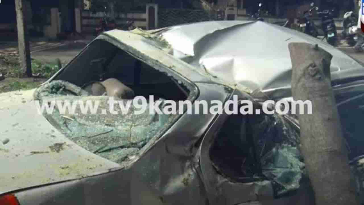 ಬೆಳಗಾವಿ: ಕಾರ್ ಮೇಲೆ ಉರುಳಿ ಬಿದ್ದ ಭಾರೀ ಗಾತ್ರದ ಮರ, ದೂಷಣೆ ಧಾರಾಕಾರವಾಗಿ ಸುರಿದ ಮಳೆಗೆ