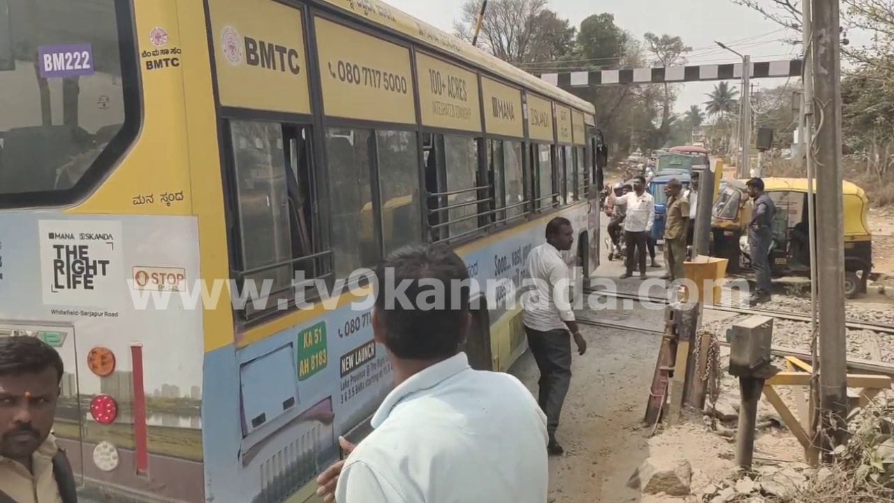 ಆನೇಕಲ್: ರೈಲು ಹಳಿಯ ಮೇಲೆಯೇ ಕೆಟ್ಟು ನಿಂತ ಬಿಎಂಟಿಸಿ ಬಸ್, ಆಮೇಲೇನಾಯ್ತು ನೋಡಿ