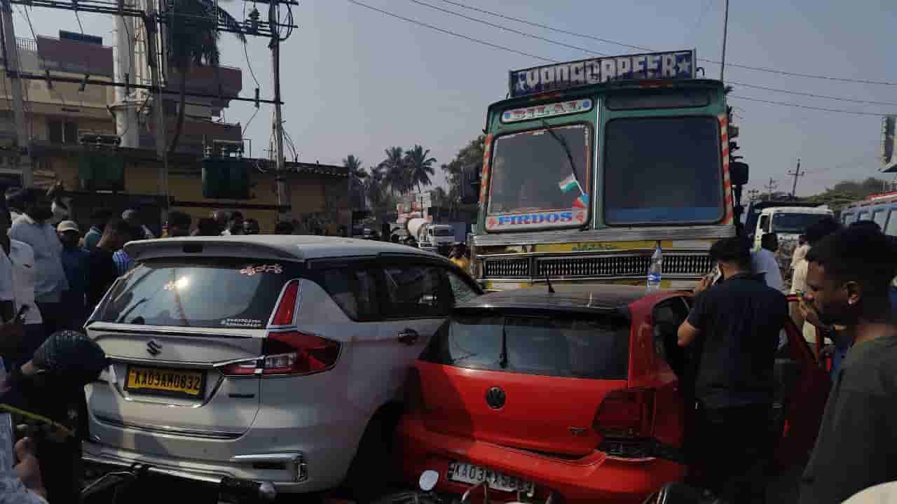ಬ್ರೇಕ್ ಫೇಲ್ ಆಗಿ ರಸ್ತೆಯಲ್ಲಿ ಅಡ್ಡಾದಿಡ್ಡಿ ನುಗ್ಗಿದ ಲಾರಿ: ಸಿಕ್ಕ ಸಿಕ್ಕ ವಾಹನಕ್ಕೆಲ್ಲ ಡಿಕ್ಕಿ