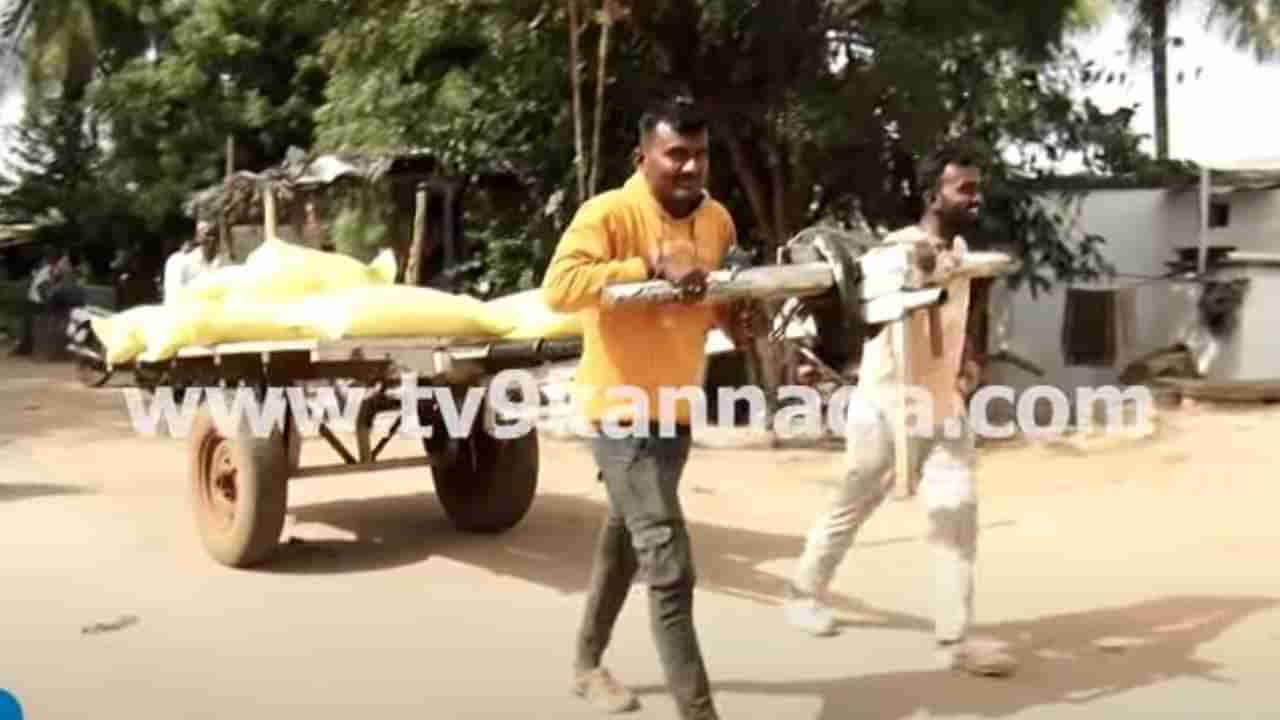 ಕೊಪ್ಪಳ, ಜುಲೈ 29: ಕೊಪ್ಪಳ ತಾಲೂಕಿನ ಮುದ್ದಾಬಳ್ಳಿ ಗ್ರಾಮದ ಬಗ್ಗೆ ಬಹಳಷ್ಟು ಜನಕ್ಕೆ ಗೊತ್ತಿರಲಾರದು, ಆದರೆ ಬಸವರಾಜ ಮತ್ತು ಪ್ರಕಾಶ್ (Basavaraj and Prakash) ಹೆಸರಿನ ಸಹೋದರರು ಊರಿನ ಹೆಸರು ಬಹಳಷ್ಟು ಜನಕ್ಕೆ ಗೊತ್ತಾಗುವಂತೆ ಮಾಡಿದ್ದಾರೆ. ರಾಜ್ಯದ ಎಲ್ಲ ಭಾಗಗಳಲ್ಲಿ ಯೂರಿಯಾ ಅಭಾವ ತಲೆದೋರಿದೆ ಮತ್ತು ಅದು ಕಾಳಸಂತೆಯಲ್ಲಿ ಮಾರಾಟವಾಗುತ್ತಿರುವ ವದಂತಿಗಳು ಹರಿದಾಡುತ್ತಿವೆ. ಮುದ್ದಾಬಳ್ಳಿ ಪ್ರಾಥಮಿಕ ಕೃಷಿ ಪತ್ತಿನ ಸಹಕಾರ ಸಂಘದ ಮುಂದೆ ರೈತರು ರಾತ್ರಿಯಿಡೀ ಕಾಯ್ದು ಇವತ್ತು ಯೂರಿಯಾ ಪಡೆದರು. ಪ್ರಕಾಶ್ ಮತ್ತು ಬಸವರಾಜ ಕುಟುಂಬಕ್ಕೆ 10 ಚೀಲ ಯೂರಿಯೂ ಸಿಕ್ಕಿದೆ. ಅದರೆ ಇವತ್ತು ನಾಗರ ಪಂಚಮಿ ಹಬ್ಬವಾಗಿರುವುದರಿಂದ ಎತ್ತುಗಳನ್ನು ದುಡಿಸುವುದಿಲ್ಲ. ಹಾಗಾಗೇ ಸಹೋದರರು ಯೂರಿಯಾದ ಹತ್ತು ಚೀಲಗಳನ್ನು ಬಂಡಿಯಲ್ಲಿ ಹೇರಿ ತಾವೇ ಅದನ್ನು ಎತುಗಳಂತೆ ಎಳೆದು ಮನೆಗೆ ಬಂದಿದ್ದಾರೆ.