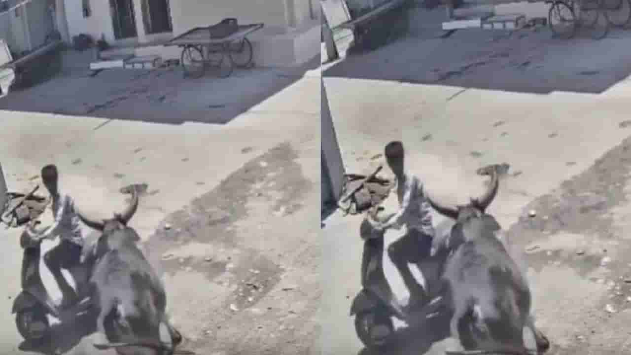 Video: ಬೈಕ್ನಲ್ಲಿ ಹೋಗುತ್ತಿದ್ದ ವ್ಯಕ್ತಿ ಮೇಲೆ ಗೂಳಿ ದಾಳಿ