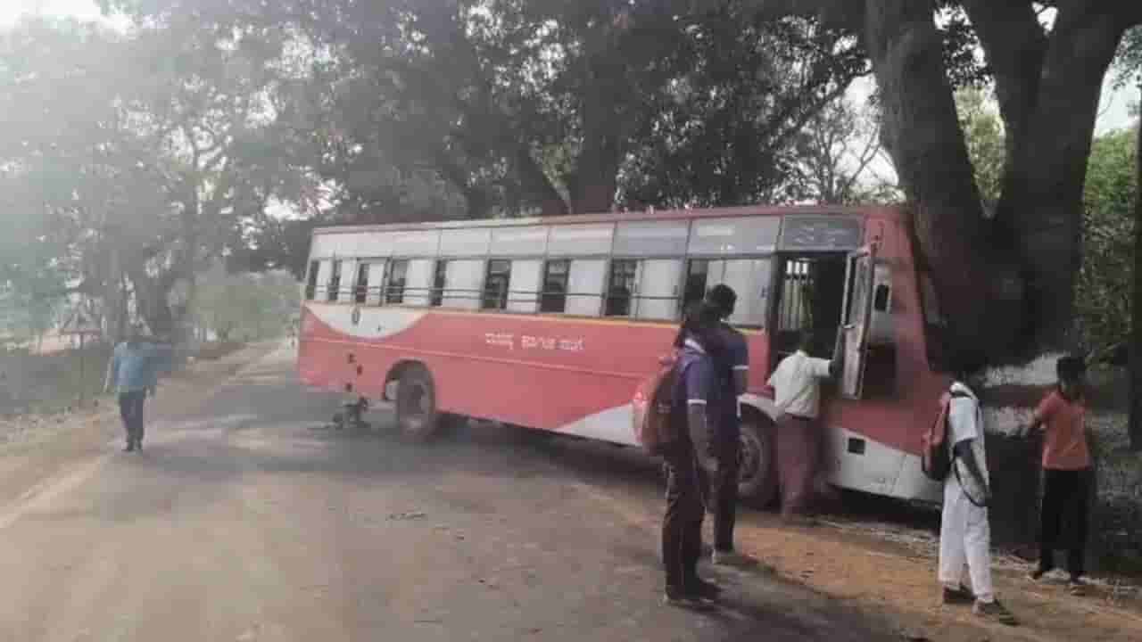 ಅಡ್ಡಬಂದ ಕಾರು ತಪ್ಪಿಸಲು ಹೋಗಿ ಮರಕ್ಕೆ ಗುದ್ದಿದ ಬಸ್: ಆಸ್ಪತ್ರೆ ಮುಂದೆಯೇ ಅಪಘಾತ!