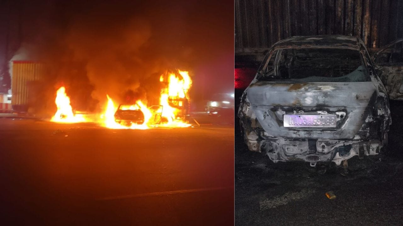 ಹೊಸಕೋಟೆ-ಕೋಲಾರ ಹೆದ್ದಾರಿಯಲ್ಲಿ ಟ್ರಕ್ಗೆ ಗುದ್ದಿ ಹೊತ್ತಿ ಉರಿದ ಕಾರು: ಚಾಲಕ ಬದುಕಿದ್ದೇ ಪವಾಡ!