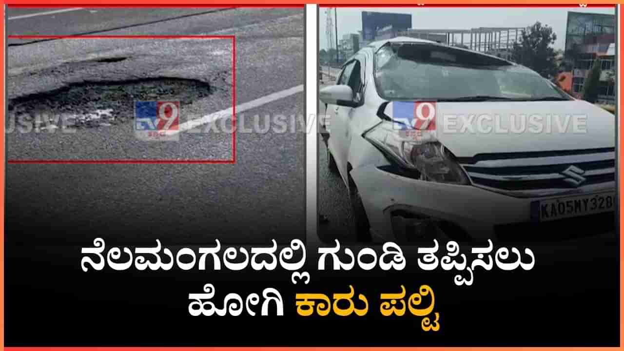 ನೆಲಮಂಗಲ ಹೆದ್ದಾರಿಯಲ್ಲಿ ಗುಂಡಿ ತಪ್ಪಿಸಲು ಹೋಗಿ ಕಾರು ಪಲ್ಟಿ: ಆರು ಮಂದಿಗೆ ಸಣ್ಣಪುಟ್ಟ ಗಾಯ
