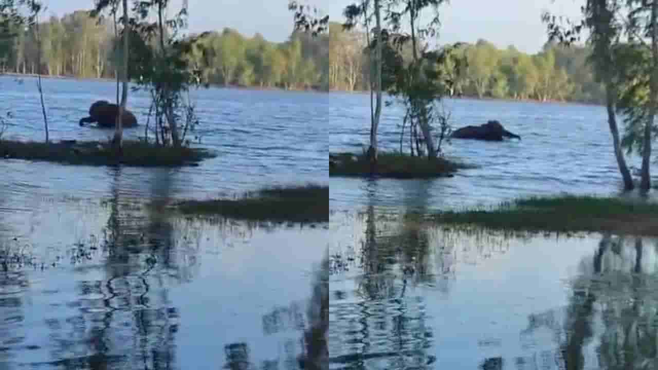 ಬರೋಬ್ಬರಿ ಒಂದು ಕಿಲೋ ಮೀಟರ್ ಈಜಿಕೊಂಡೇ ಬಂದ ಒಂಟಿ ಸಲಗ!