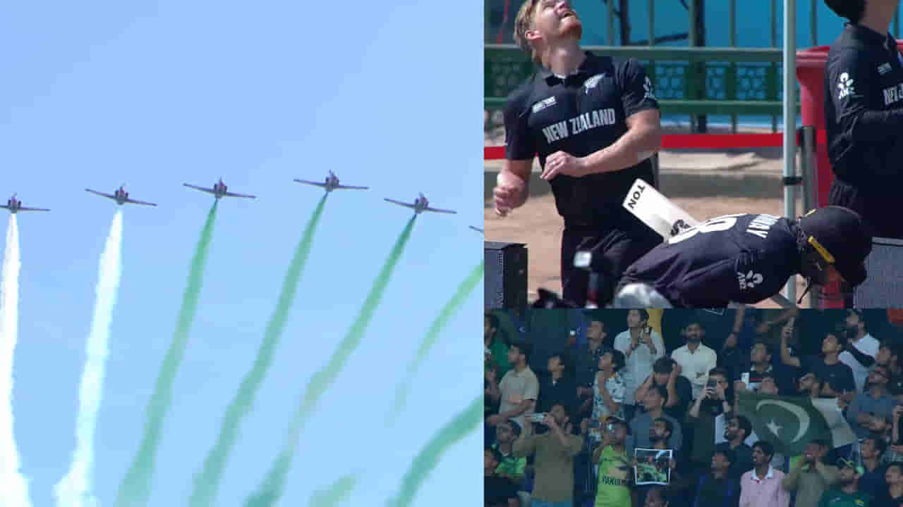 Champions Trophy 2025: ನ್ಯೂಜಿಲೆಂಡ್ ಮತ್ತು ಪಾಕಿಸ್ತಾನ ನಡುವಿನ ಪಂದ್ಯಕ್ಕೂ ಮುನ್ನ ಅದ್ಧೂರಿ ಉದ್ಘಾಟನಾ ಸಮಾರಂಭ ನಡೆಯಿತು. ಈ ಸಮಯದಲ್ಲಿ, ಪಾಕಿಸ್ತಾನಿ ವಾಯುಪಡೆಯ ವಿಮಾನಗಳು ಆಕಾಶದಲ್ಲಿ ಸಾಹಸ ಪ್ರದರ್ಶನ ನೀಡುತ್ತಿರುವುದು ಕಂಡುಬಂದಿತು. ಆದರೆ ಈ ವಿಮಾನಗಳು ಕ್ರೀಡಾಂಗಣದ ಬಳಿ ಬಂದಾಗ, ಅಭಿಮಾನಿಗಳು ಮಾತ್ರವಲ್ಲದೆ ಆಟಗಾರರು ಕೂಡ ಭಯಭೀತರಾದರು.