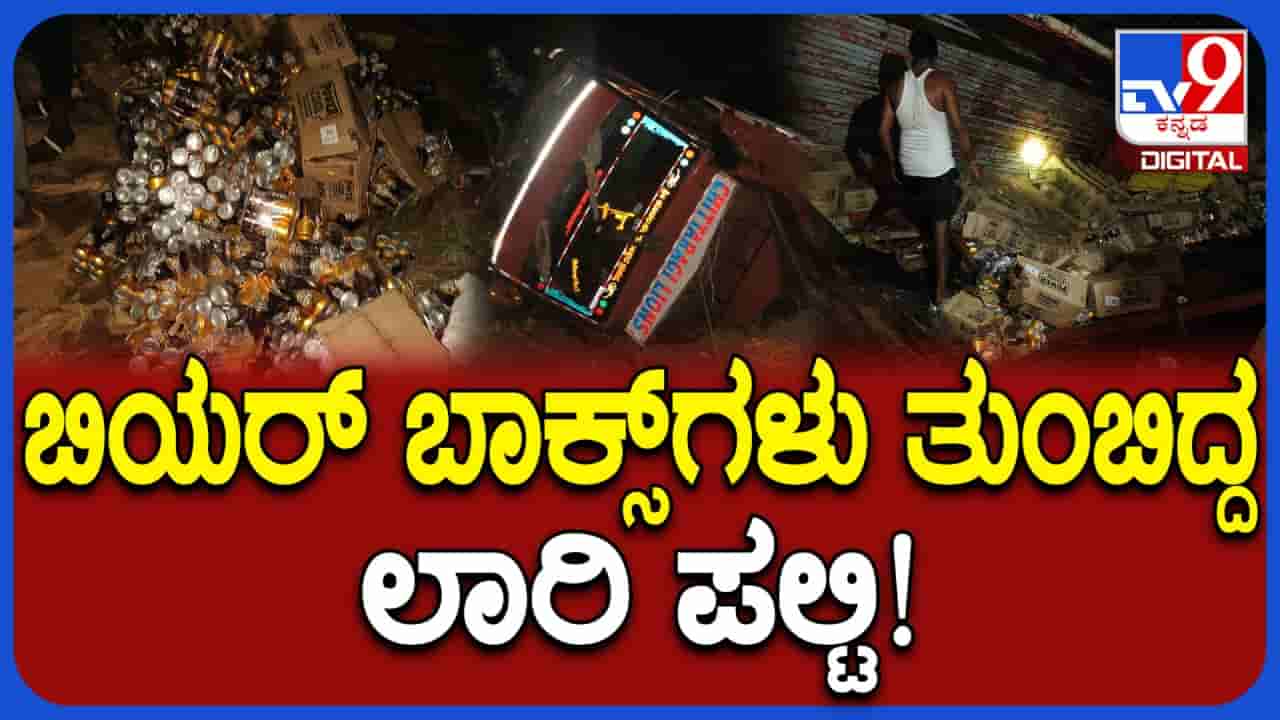 ಚನ್ನಗಿರಿ: ಬಿಯರ್ ಬಾಕ್ಸ್ ಹೊತ್ತೊಯ್ಯುತ್ತಿದ್ದ ಲಾರಿ ಪಲ್ಟಿ, ಅಡಿಕೆ ತೋಟದಲ್ಲಿ ಬಿಯರ್ ಬಾಟಲಿಗಳ ಸುರಿಮಳೆ!
