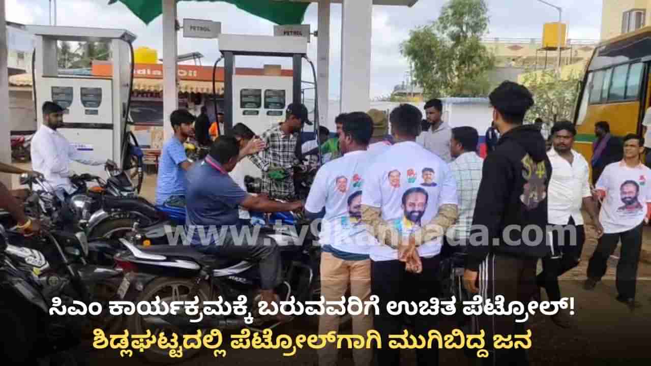 ಚಿಕ್ಕಬಳ್ಳಾಪುರ: ಶಿಡ್ಲಘಟ್ಟದಲ್ಲಿ ಸಿಎಂ ಸಿದ್ದರಾಮಯ್ಯ ಕಾರ್ಯಕ್ರಮಕ್ಕೆ ಬರುವವರಿಗೆ ಉಚಿತ ಪೆಟ್ರೋಲ್, ಮುಗಿಬಿದ್ದ ಜನ