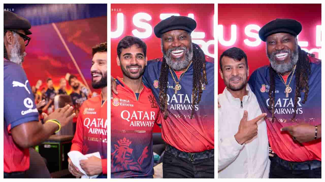 ಆರ್ಸಿಬಿ ಪರ ಬಹಳಷ್ಟು ವರ್ಷ ಆಡಿದ್ದ ಕ್ರಿಸ್ ಗೇಲ್ ಆರ್ಸಿಬಿ ಪಂದ್ಯ ನೋಡಲು ಚಿನ್ನಸ್ವಾಮಿ ಕ್ರೀಡಾಂಗಣಕ್ಕೆ ಆಗಮಿಸಿದ್ದರು. ಆದರೆ ಮಳೆಯಿಂದಾಗಿ ಪಂದ್ಯದ ಟಾಸ್ ಕೂಡ ನಡೆಯಲಿಲ್ಲ. ಆದಾಗ್ಯೂ ಆಟಗಾರರನ್ನು ಭೇಟಿಯಾಗಲು ಡ್ರೆಸ್ಸಿಂಗ್ ರೂಮ್ಗೆ ಬಂದ ಗೇಲ್ರನ್ನು ಫಿಲ್ ಸಾಲ್ಟ್ ಸೇರಿದಂತೆ ಆರ್ಸಿಬಿಯ ಎಲ್ಲಾ ಆಟಗಾರರು ಆತ್ಮೀಯವಾಗಿ ಸ್ವಾಗತಿಸಿದರು. ಗೇಲ್ರನ್ನು ನೋಡಿದ ಎಲ್ಲಾ ಆಟಗಾರರ ಮೊಗದಲ್ಲಿ ಸಂತೋಷ ತುಂಬಿ ತುಳುಕಿತು.