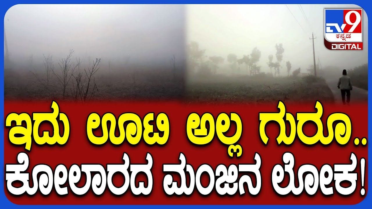 ಕೋಲಾರ, (ಡಿಸೆಂಬರ್ 19): ಕರ್ನಾಟಕದ ಹಲವು ಜಿಲ್ಲೆಗಳಲ್ಲಿ ಚಳಿ ತೀವ್ರತೆ ಹೆಚ್ಚಳವಾಗುತ್ತಿದೆ. ಹೀಗಾಗಿ ಕೋಲಾರ ಜಿಲ್ಲೆಯಾದ್ಯಂತ ಬೆಳಗ್ಗೆ 8 ಗಂಟೆಯಾದರೂ ಸಹ ಸೂರ್ಯನ ದರ್ಶನವಿಲ್ಲದೇ ಮಂಜು ಆವರಿಸಿಕೊಂಡಿದೆ. ಮೈಕೊರೆವ ಚಳಿಯ ಜೊತೆಗೆ ದಟ್ಟವಾಗಿ ಮಂಜು ಆವರಿಸಿದ್ದು, ಒಂದು ರೀತಿ ಊಟಿಯಂತೆ ಭಾಸವಾಗುತ್ತಿದೆ. ಇನ್ನು ಮಂಜಿನಿಂದಾಗಿ ರಸ್ತೆ ಕಾಣದ ವಾಹನ ಸವಾರರು ಪರದಾಡುವಂತಾಗಿದೆ. ಹಾಗಾದ್ರೆ, ವಾತಾವರಣ ಹೇಗಿತ್ತು ಎನ್ನುವುದನ್ನು ನೀವು ಒಮ್ಮೆ ನೋಡಿ.