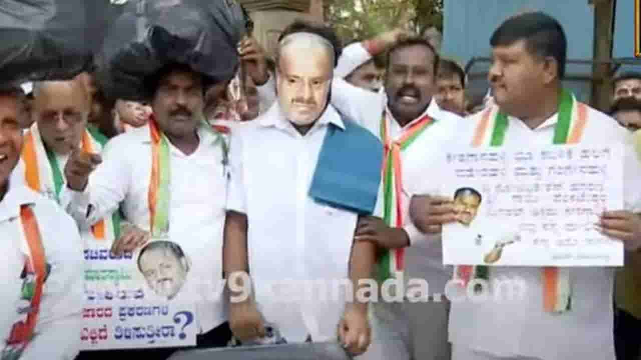 ಜೆಡಿಎಸ್ ಪ್ರತಿಭಟನೆ ವಿರುದ್ಧ ಕಾಂಗ್ರೆಸ್ ನಾಯಕರ ಪ್ರತಿಭಟನೆ! ಜೆಡಿಎಸ್ ಕಚೇರಿಗೆ ಲಾರಿ ಕಳಿಸಿ ಅಣುಕು ಪ್ರದರ್ಶನ