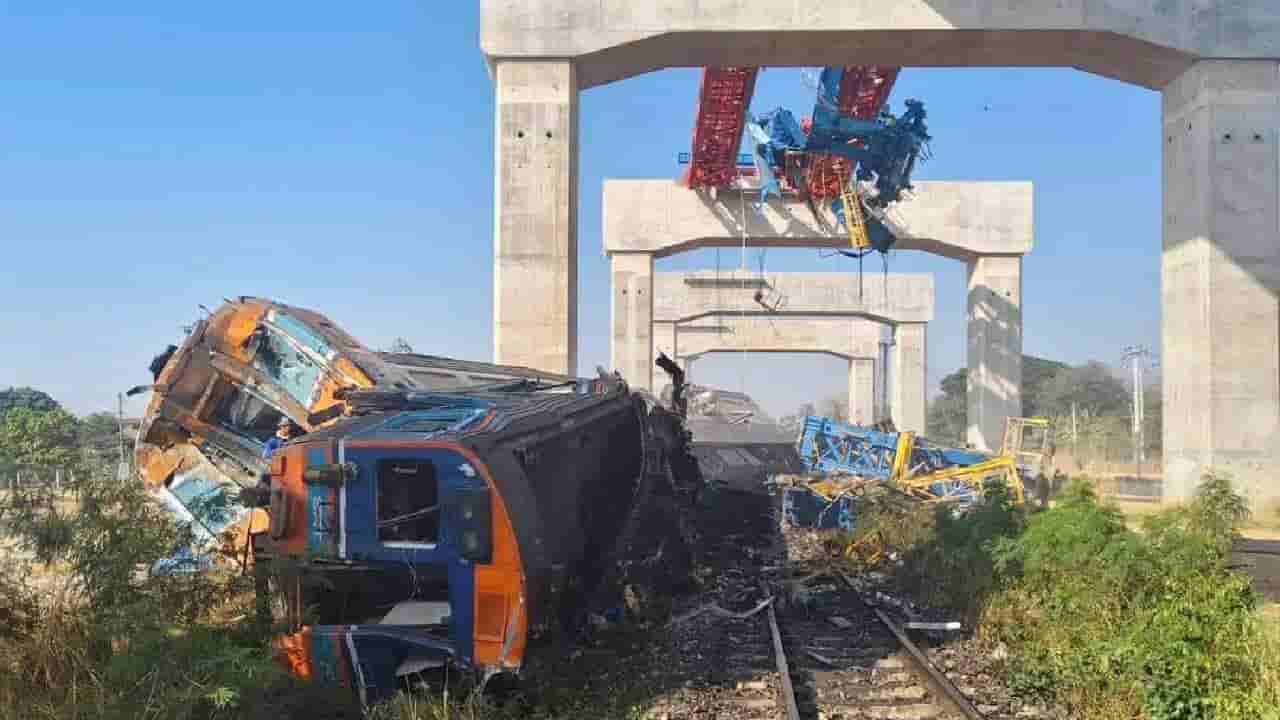 ಥೈಲ್ಯಾಂಡ್ನಲ್ಲಿ ರೈಲು ಹಳಿ ತಪ್ಪಿದ ಪರಿಣಾಮ 22 ಮಂದಿ ಮೃತಪಟ್ಟಿರುವ ಘಟನೆ ಬುಧವಾರ ನಡೆದಿದೆ. ಬ್ಯಾಂಕಾಕ್ನಿಂದ ದೇಶದ ಈಶಾನ್ಯ ಪ್ರಾಂತ್ಯಕ್ಕೆ ಪ್ರಯಾಣಿಸುತ್ತಿದ್ದ ರೈಲಿನ ಒಂದು ಬೋಗಿಯ ಮೇಲೆ ನಿರ್ಮಾಣ ಕ್ರೇನ್ ಬಿದ್ದ ಪರಿಣಾಮ ಬೋಗಿಗಳು ಹಳಿ ತಪ್ಪಿವೆ ಎನ್ನುವ ಮಾಹಿತಿ ಲಭ್ಯವಾಗಿದೆ. ಬ್ಯಾಂಕಾಕ್ನಿಂದ ಈಶಾನ್ಯಕ್ಕೆ ಸುಮಾರು 230 ಕಿಲೋಮೀಟರ್ ದೂರದಲ್ಲಿರುವ ನಖೋನ್ ರಾಟ್ಚಸಿಮಾ ಪ್ರಾಂತ್ಯದ ಸಿಖಿಯೋ ಜಿಲ್ಲೆಯಲ್ಲಿ ಅಪಘಾತ ಸಭವಿಸಿದೆ. ಹಳಿಗಳ ಬಳಿಯ ಹೈಸ್ಪೀಡ್ ರೈಲು ನಿರ್ಮಾಣ ಸ್ಥಳದಲ್ಲಿ ಕಾರ್ಯನಿರ್ವಹಿಸುತ್ತಿದ್ದ ಕ್ರೇನ್ಗೆ ರೈಲಿನ ಮೇಲೆ ಬಿದ್ದಿದೆ.