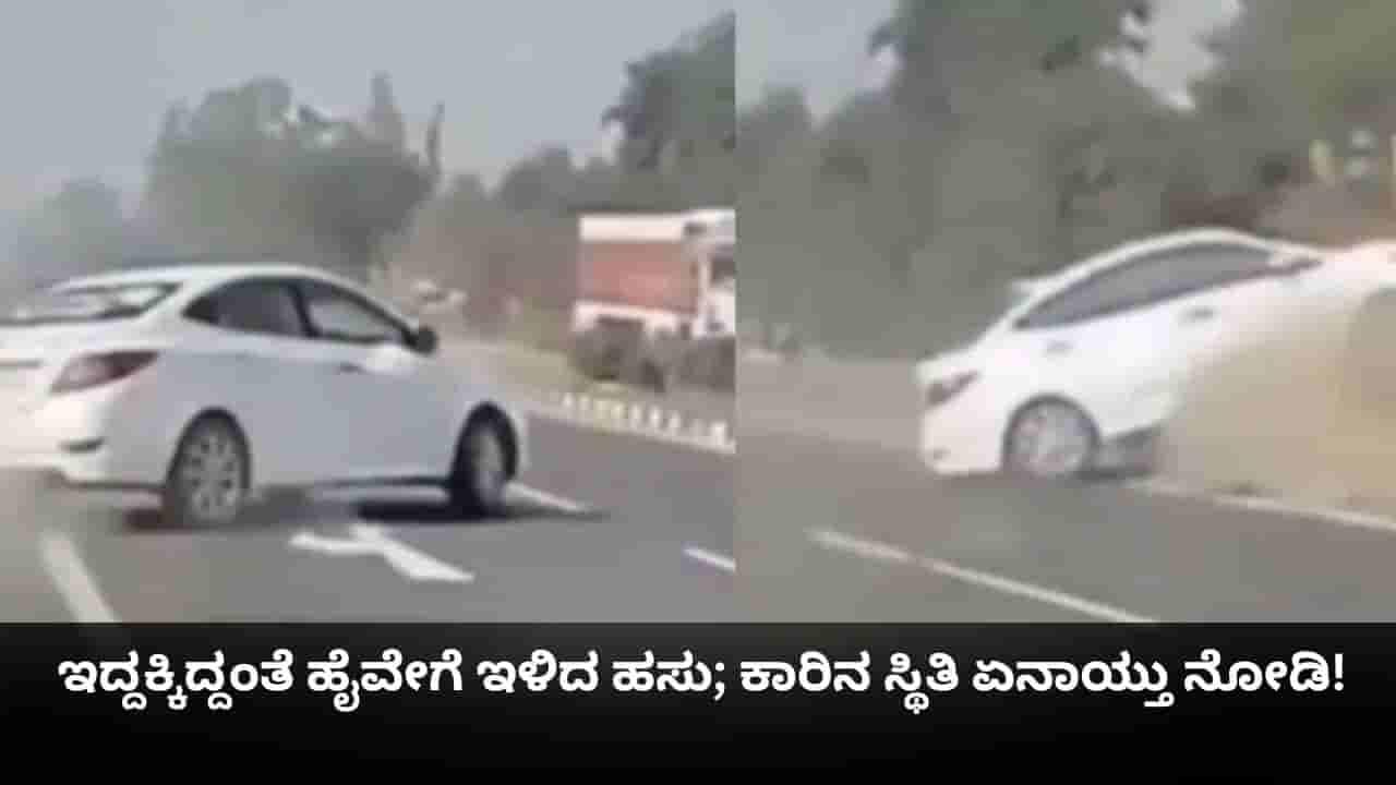 ಇದ್ದಕ್ಕಿದ್ದಂತೆ ಹೈವೇಗೆ ಹಾರಿದ ಹಸು; ಕಾರಿನ ಸ್ಥಿತಿ ಏನಾಯ್ತು ನೋಡಿ!