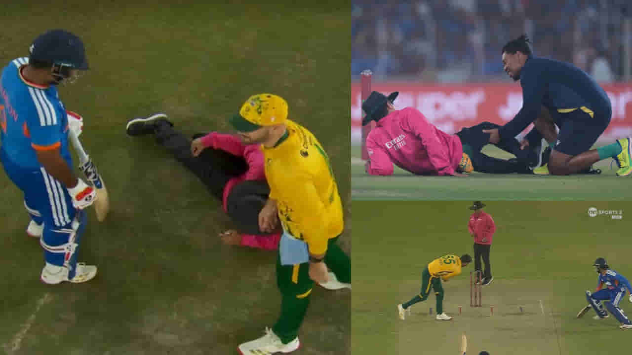 IND vs SA: ಸಂಜು ತೋಳ್ಬಲಕ್ಕೆ ಸಿಲುಕಿ ಮೈದಾನದಲ್ಲೇ ಬಿದ್ದು ಒದ್ದಾಡಿದ ಅಂಪೈರ್; ವಿಡಿಯೋ ನೋಡಿ