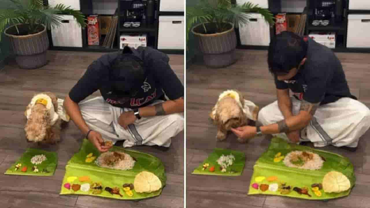 ಕೇರಳದ ಸಾಂಪ್ರದಾಯಿಕ ಉಡುಗೆ ತೊಟ್ಟು, ಮಾಲೀಕನ ಜೊತೆ ಕುಳಿತು, ಬಾಳೆ ಎಲೆಯಲ್ಲಿ ಊಟ ಮಾಡುತ್ತಿರುವ ಮುದ್ದಾದ ಸಾಕುನಾಯಿ (Pet Dog) ಎಲ್ಲರ ಮನ ಗೆದ್ದಿದೆ. ಈ ನಾಯಿಯ ವಿಡಿಯೋ ಇದೀಗ ಸೋಷಿಯಲ್ ಮೀಡಿಯಾದಲ್ಲಿ ವೈರಲ್ ಆಗಿದೆ. ಕೇರಳ ಮತ್ತು ಪ್ರಪಂಚದ ಇತರ ಭಾಗಗಳಲ್ಲಿ ಮಲಯಾಳಿಗಳು ಹಿಂದೂ ಹಬ್ಬವಾದ ಓಣಂ (Onam) ಅನ್ನು ಆಚರಿಸುತ್ತಿದ್ದಾರೆ. ಈ 10 ದಿನಗಳ ಆಚರಣೆಯು ಅಂತಿಮ ಮತ್ತು ಪ್ರಮುಖ ದಿನವಾದ ತಿರುವೋಣಂನಲ್ಲಿ ಕೊನೆಗೊಳ್ಳುತ್ತದೆ.