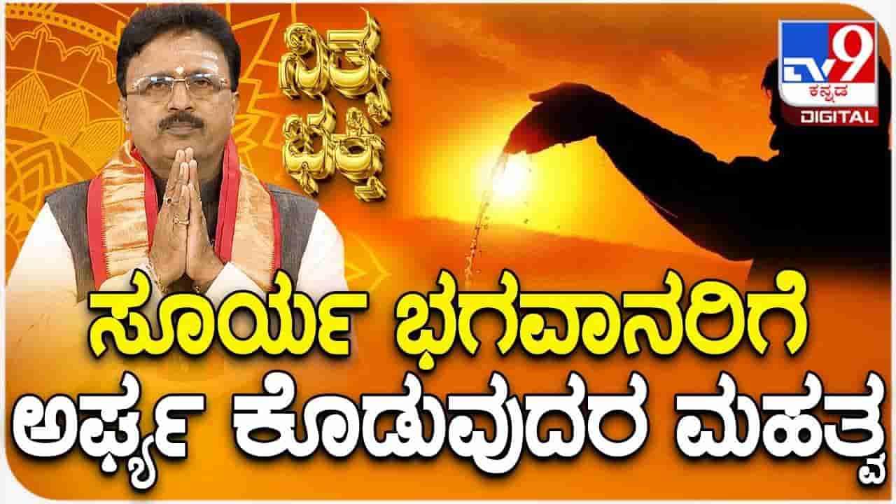 ಟಿವಿ9 ನಿತ್ಯ ಭಕ್ತಿ ಕಾರ್ಯಕ್ರಮದಲ್ಲಿ ಸೂರ್ಯ ಭಗವಾನರಿಗೆ ಅರ್ಘ್ಯ ಕೊಡುವುದರ ಮಹತ್ವವೇನು ಎಂದು ಡಾ.ಬಸವರಾಜ ಗುರೂಜಿ ವಿವರಿಸಿದ್ದಾರೆ. ಸೂರ್ಯೋದಯವು ದಿನದ ಪ್ರಾರಂಭವನ್ನು ಸೂಚಿಸುತ್ತದೆ. ನಮ್ಮ ಜೀವನದಲ್ಲಿ ಎದುರಾಗುವ ಎಲ್ಲಾ ಕಷ್ಟ ಮತ್ತು ಸಂಕಷ್ಟಗಳಿಗೆ ದೇವರ ಮೊರೆ ಹೋಗುವಾಗ, ಸೂರ್ಯ ಭಗವಾನ್ ಸಾಕ್ಷಾತ್ ಕಣ್ಣಿಗೆ ಕಾಣುವ ದೇವರಾಗಿದ್ದಾರೆ. ಸೂರ್ಯನು ಗ್ರಹಗಳ ರಾಜನಾಗಿ, ಇಡೀ ಭೂಮಂಡಲವನ್ನು ಬೆಳಗುವ ಶಕ್ತಿಯಾಗಿದ್ದಾನೆ. ಬೆಳಗ್ಗೆ ಎದ್ದ ತಕ್ಷಣ ಸೂರ್ಯ ನಮಸ್ಕಾರ ಮಾಡುವ ಪದ್ಧತಿ ಹಲವರಿಗೆ ಇದ್ದರೂ, ಅದಕ್ಕಿಂತಲೂ ಸರಳವಾದ ಮತ್ತು ಪರಿಣಾಮಕಾರಿ ವಿಧಾನವೆಂದರೆ ಸೂರ್ಯನಿಗೆ ಅರ್ಘ್ಯವನ್ನು ಅರ್ಪಿಸುವುದು.