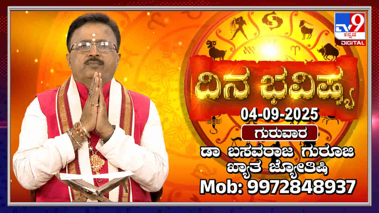 ಬೆಂಗಳೂರು, ಸೆಪ್ಟೆಂಬರ್ 04: ಖ್ಯಾತ ಜ್ಯೋತಿಷಿ ಡಾ. ಬಸವರಾಜ ಗುರೂಜಿ ಅವರು ದ್ವಾದಶ ರಾಶಿಗಳ ಭವಿಷ್ಯವನ್ನು ತಿಳಿಸಿದ್ದಾರೆ. ಮೇಷ ರಾಶಿಯವರಿಗೆ ಆರ್ಥಿಕ ಚಿಂತೆ ಇದ್ದರೂ ಸಂಜೆಯ ಹೊತ್ತಿನಲ್ಲಿ ಆದಾಯ ಬರಲಿದೆ. ಕುಟುಂಬದಿಂದ ಶುಭ ಸುದ್ದಿಗಳು ಬರಲಿವೆ. ವೃಷಭ ರಾಶಿಯವರು ಪರಿಶ್ರಮ ಪಟ್ಟರೆ ಯಶಸ್ಸು ಸಿಗಲಿದೆ. ಸ್ನೇಹಿತರ ಸಹಾಯ ದೊರೆಯಲಿದೆ. ಮಿಥುನ ರಾಶಿಯವರಿಗೆ ಆರ್ಥಿಕವಾಗಿ ಒಳ್ಳೆಯ ದಿನವಾಗಲಿದೆ. ಕೆಲಸ ಕಾರ್ಯಗಳಲ್ಲಿ ಜಯ ಸಾಧಿಸುವಿರಿ. ಪ್ರತಿಯೊಂದು ರಾಶಿಗೂ ಅದೃಷ್ಟ ಸಂಖ್ಯೆಗಳು ಮತ್ತು ಶುಭ ದಿಕ್ಕುಗಳನ್ನು ಡಾ. ಗುರೂಜಿ ತಿಳಿಸಿದ್ದಾರೆ.