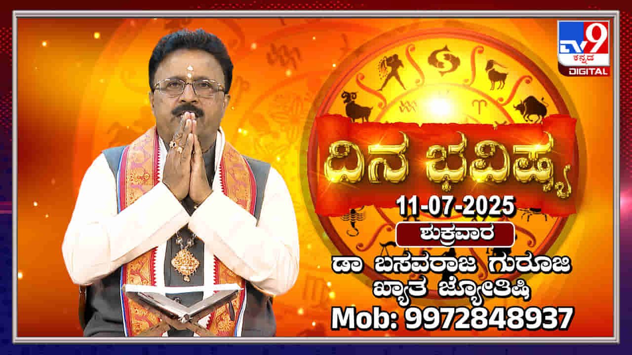 ಬೆಂಗಳೂರು, ಜುಲೈ 11: ಇಂದಿನ ದಿನ ಭವಿಷ್ಯ ಕಾರ್ಯಕ್ರಮದಲ್ಲಿ ಖ್ಯಾತ ಜ್ಯೋತಿಷಿ ಡಾ. ಬಸವರಾಜ ಗುರೂಜಿ ಅವರು 12 ರಾಶಿಗಳ ಫಲಾಫಲಗಳನ್ನು ತಿಳಿಸಿದ್ದಾರೆ. ಪೂರ್ವಾಷಾಢ ನಕ್ಷತ್ರದ ಪ್ರಭಾವದಿಂದ, ಪ್ರತಿಯೊಂದು ರಾಶಿಯವರಿಗೂ ವಿಭಿನ್ನ ಫಲಗಳು ಉಂಟಾಗಲಿವೆ. ಮೇಷ ರಾಶಿಯವರಿಗೆ ಆರು ಗ್ರಹಗಳ ಶುಭಫಲ, ವೃಷಭ ರಾಶಿಯವರಿಗೆ ಏಳು ಗ್ರಹಗಳ ಶುಭಫಲ, ಮಿಥುನ ರಾಶಿಯವರಿಗೆ ಆರ್ಥಿಕ ಲಾಭ ಮತ್ತು ನಷ್ಟ ಎರಡೂ ಇರಬಹುದು ಎಂದು ತಿಳಿಸಲಾಗಿದೆ. ಉಳಿದ ರಾಶಿಗಳ ಫಲಾಫಲಗಳನ್ನು ಕೂಡ ವಿವರಿಸಲಾಗಿದೆ.