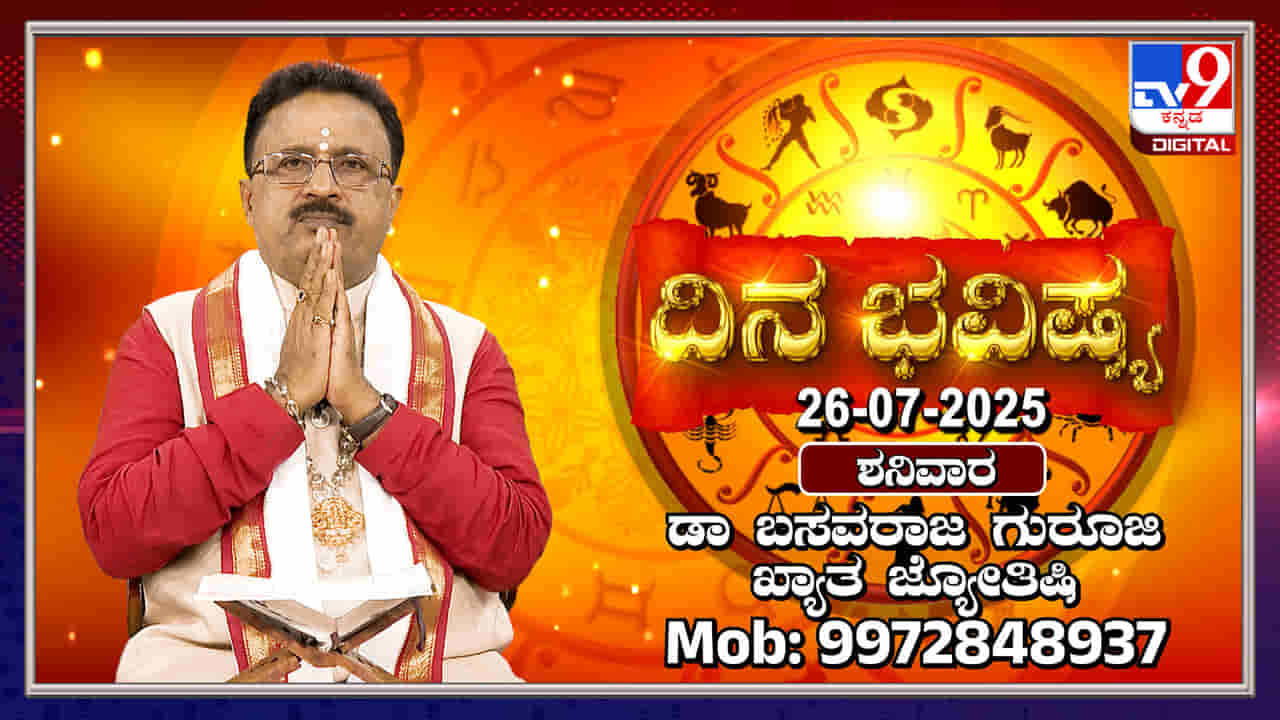 ಜುಲೈ 26, 2025 ರ ದಿನದ ರಾಶಿ ಫಲಗಳನ್ನು ಡಾ. ಬಸವರಾಜ ಗುರೂಜಿ ವಿವರಿಸಿದ್ದಾರೆ. ಮೇಷ ರಾಶಿಯವರಿಗೆ ಆರ್ಥಿಕ ಲಾಭ ಮತ್ತು ಹಳೆಯ ಬಾಕಿ ವಸೂಲಿಯ ಯೋಗವಿದೆ. ವೃಷಭ ರಾಶಿಯವರಿಗೆ ಆರು ಗ್ರಹಗಳ ಶುಭ ಫಲವಿದೆ. ಶ್ರಾವಣ ಶನಿವಾರದ ವಿಶೇಷತೆ ಮತ್ತು ದಿನದ ಮಂಗಳಕರ ಕಾಲಗಳ ಬಗ್ಗೆಯೂ ಮಾಹಿತಿ ನೀಡಲಾಗಿದೆ.