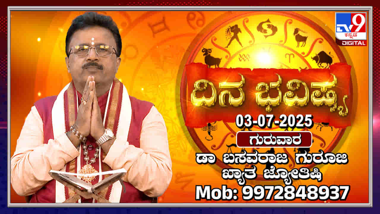 ಜುಲೈ 3ರ ದಿನದ ರಾಶಿ ಫಲಗಳನ್ನು ಡಾ. ಬಸವರಾಜ ಗುರೂಜಿ ತಿಳಿಸಿದ್ದಾರೆ. ಮೇಷ, ವೃಷಭ ಮತ್ತು ಮಿಥುನ ರಾಶಿಯವರಿಗೆ ಈ ದಿನ ಉತ್ತಮ ಫಲಿತಾಂಶಗಳಿವೆ ಎಂದು ಹೇಳಲಾಗಿದೆ. ಕೆಲಸ ಕಾರ್ಯಗಳಲ್ಲಿ ಯಶಸ್ಸು, ಆರ್ಥಿಕ ಲಾಭ ಮತ್ತು ಆರೋಗ್ಯದಲ್ಲಿ ಸುಧಾರಣೆ ಕಂಡುಬರುತ್ತದೆ ಎಂದು ತಿಳಿಸಲಾಗಿದೆ. ಪ್ರತಿಯೊಂದು ರಾಶಿಗೆ ಸೂಕ್ತವಾದ ಸಲಹೆಗಳನ್ನೂ ನೀಡಲಾಗಿದೆ.