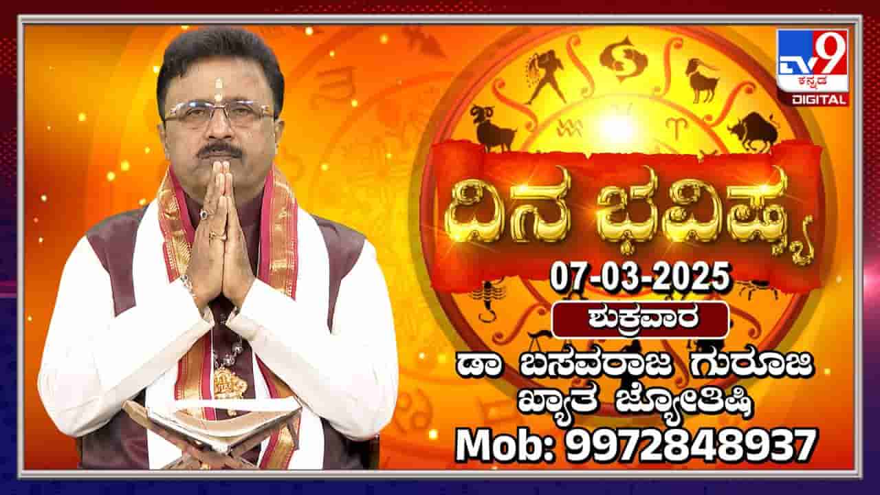 ಮಾರ್ಚ್ 7 ಶುಕ್ರವಾರದ ದಿನಭವಿಷ್ಯ, 12 ರಾಶಿಗಳ ವಿಶೇಷ ಫಲಾಫಲಗಳನ್ನು ಖ್ಯಾತ ಜ್ಯೋತಿಷಿ ಬಸವರಾಜ ಗುರೂಜಿ ತಿಳಿಸಿದ್ದಾರೆ. ಪ್ರತಿ ರಾಶಿಯವರಿಗೂ ಆ ದಿನದ ರಾಹುಕಾಲ, ಶುಭಕಾಲ ಮತ್ತು ಅದೃಷ್ಟ ಸಂಖ್ಯೆಯನ್ನು ತಿಳಿಸಲಾಗಿದೆ. ಮೇಷ ರಾಶಿಯವರಿಗೆ ಆರು ಗ್ರಹಗಳ ಶುಭಫಲವಿದೆ. ಆರ್ಥಿಕವಾಗಿ ಉತ್ತಮ ಫಲಿತಾಂಶ ಸಿಗುತ್ತದೆ, ಆದರೆ ವಾಹನದಲ್ಲಿ ಜಾಗರೂಕರಾಗಿರಬೇಕು. ವೃಷಭ ರಾಶಿಯವರಿಗೆ ಏಳು ಗ್ರಹಗಳ ಶುಭಫಲವಿದೆ. ಹಳೆಯ ಉಡುಗೊರೆಗಳಿಂದ ಲಾಭವಾಗುತ್ತದೆ. ಮಿಥುನ ರಾಶಿಯವರಿಗೆ ಆರು ಗ್ರಹಗಳ ಶುಭಫಲವಿದ್ದರೂ, ಸ್ವಲ್ಪ ಚಂಚಲತೆ ಇರುತ್ತದೆ. ಕರ್ಕಾಟಕ ರಾಶಿಯವರಿಗೆ ಆರು ಗ್ರಹಗಳ ಶುಭಫಲವಿದೆ ಮತ್ತು ಆರ್ಥಿಕವಾಗಿ ಉತ್ತಮವಾಗಿರುತ್ತದೆ. ಸಿಂಹ ರಾಶಿಯವರಿಗೆ ಏಳು ಗ್ರಹಗಳ ಶುಭಫಲವಿದೆ ಮತ್ತು ನಿರೀಕ್ಷಿತ ಫಲಿತಾಂಶ ಸಿಗುತ್ತದೆ. ಕನ್ಯಾ ರಾಶಿಯವರಿಗೆ ಐದು ಗ್ರಹಗಳ ಶುಭಫಲವಿದೆ. ತುಲಾ ರಾಶಿಯವರಿಗೆ ಆರು ಗ್ರಹಗಳ ಶುಭಫಲವಿದೆ. ವೃಶ್ಚಿಕ ರಾಶಿಯವರಿಗೆ ಏಳು ಗ್ರಹಗಳ ಶುಭಫಲವಿದೆ ಮತ್ತು ಉದ್ಯೋಗದಲ್ಲಿ ಶುಭವಾಗುತ್ತದೆ. ಧನುಸ್ಸು ರಾಶಿಯವರಿಗೆ ಆರು ಗ್ರಹಗಳ ಶುಭಫಲವಿದೆ. ಮಕರ ರಾಶಿಯವರಿಗೆ ಆರು ಗ್ರಹಗಳ ಶುಭಫಲವಿದ್ದರೂ, ಖರ್ಚು ಜಾಸ್ತಿಯಾಗಬಹುದು. ಕುಂಭ ರಾಶಿಯವರಿಗೆ ಐದು ಗ್ರಹಗಳ ಶುಭಫಲವಿದೆ. ಮೀನ ರಾಶಿಯವರಿಗೆ ಏಳು ಗ್ರಹಗಳ ಶುಭಫಲವಿದೆ ಮತ್ತು ಕೆಲಸಕಾರ್ಯಗಳಲ್ಲಿ ಜಯ ಸಿಗುತ್ತದೆ. ಪ್ರತಿ ರಾಶಿಗೂ ಸೂಕ್ತ ಬಣ್ಣ, ದಿಕ್ಕು ಮತ್ತು ಮಂತ್ರವನ್ನು ತಿಳಿಸಿದ್ದಾರೆ.