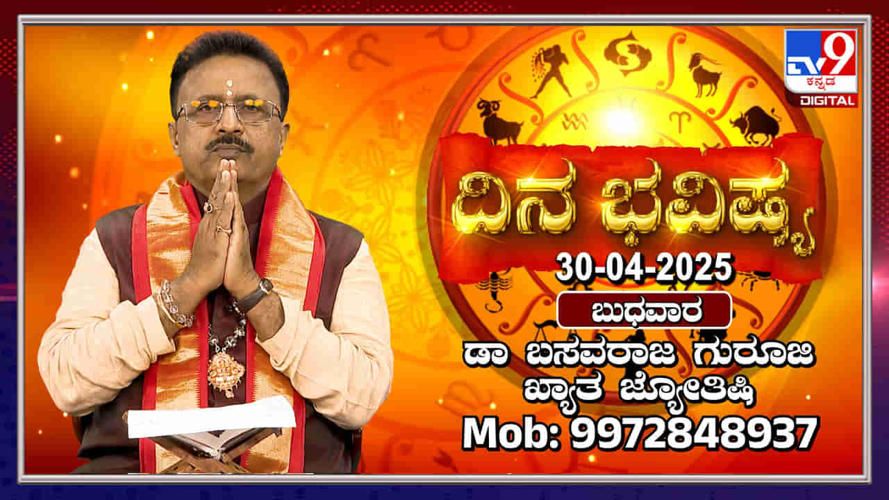 ಏಪ್ರಿಲ್ 30 ಬುಧವಾರದ ದ್ವಾದಶ ರಾಶಿಗಳ ಭವಿಷ್ಯಗಳ ಬಗ್ಗೆ ಖ್ಯಾತ ಜ್ಯೋತಿಷಿ ಮತ್ತು ವಾಸ್ತು ಶಾಸ್ತ್ರಜ್ಞ ಡಾ ಬಸವರಾಜ ಗುರೂಜಿ ವಿಡಿಯೋದಲ್ಲಿ ತಿಳಿಸಿಕೊಟ್ಟಿದ್ದಾರೆ. ಪ್ರತಿ ರಾಶಿಯವರ ಶುಭ ಬಣ್ಣ, ದಿಕ್ಕು ಮತ್ತು ಅದೃಷ್ಟ ಸಂಖ್ಯೆ ಸಹ ನೀಡಲಾಗಿದೆ. ಪ್ರತಿ ರಾಶಿಯವರು ಜಪಿಸಬೇಕಾದ ಮಂತ್ರದ ಬಗ್ಗೆ ಕೂಡ ತಿಳಿಸಲಾಗಿದೆ.