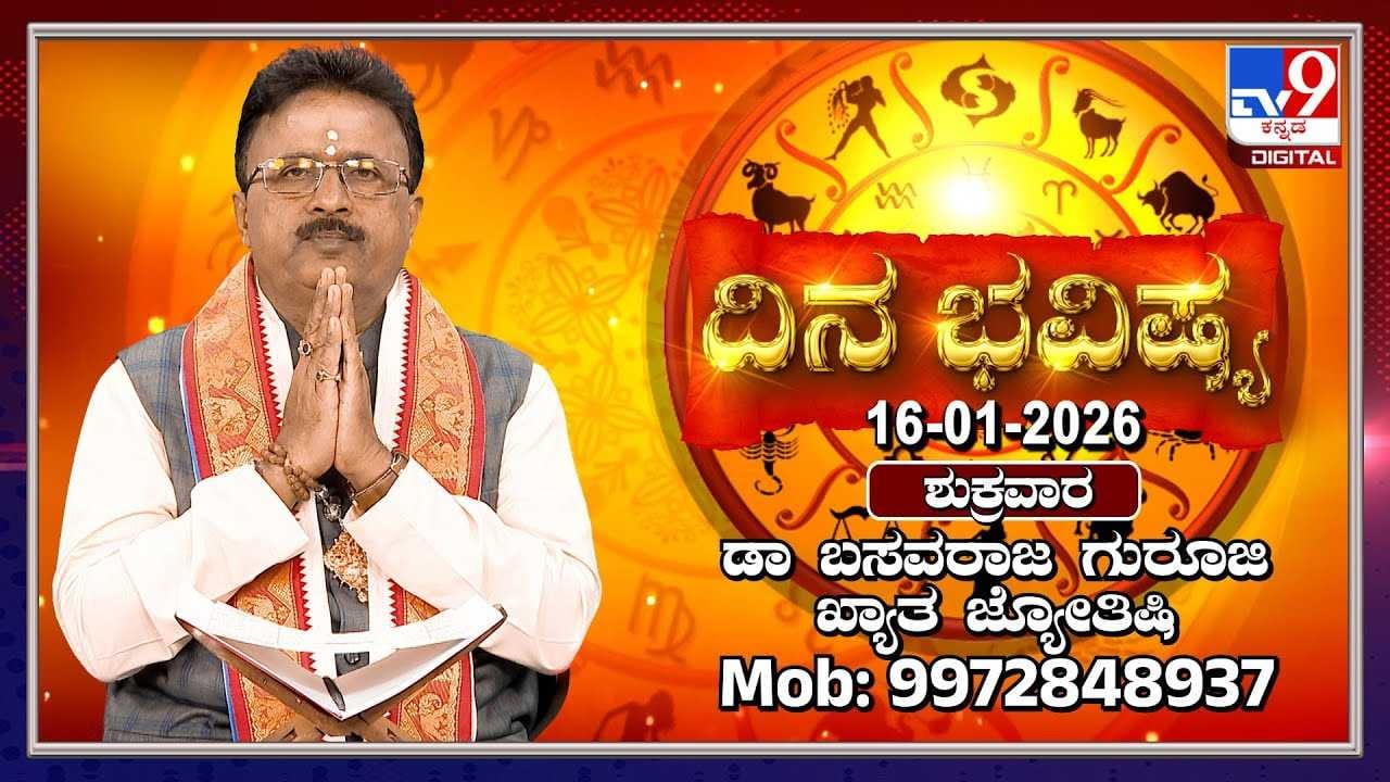 ಖ್ಯಾತ ಜ್ಯೋತಿಷಿ ಡಾ. ಬಸವರಾಜ ಗುರೂಜಿ ಅವರು 16 ಜನವರಿ 2026 ರ ದ್ವಾದಶ ರಾಶಿಗಳ ಫಲಾಫಲವನ್ನು ಪ್ರಸ್ತುತಪಡಿಸಿದ್ದಾರೆ. ಶುಕ್ರವಾರದ ದ್ವಾದಶ ರಾಶಿಗಳ ಫಲಾಫಲ ಕುರಿತು ಮಾಹಿತಿ ನೀಡಿದ್ದಾರೆ. ವಿಶ್ವಾವಸು ನಾಮ ಸಂವತ್ಸರ, ಉತ್ತರಾಯಣ, ಪುಷ್ಯ ಮಾಸದ ಈ ಶುಭದಿನದಂದು ರವಿ ಮಕರ ರಾಶಿಯಲ್ಲಿ, ಚಂದ್ರ ಧನು ರಾಶಿಯಲ್ಲಿ ಹಾಗೂ ಕುಜ ಗ್ರಹ ಮಕರ ರಾಶಿಯನ್ನು ಪ್ರವೇಶಿಸಿ ಚತುರ್ಗ್ರಹ ಕೂಟ ನಿರ್ಮಾಣವಾಗಿದೆ.