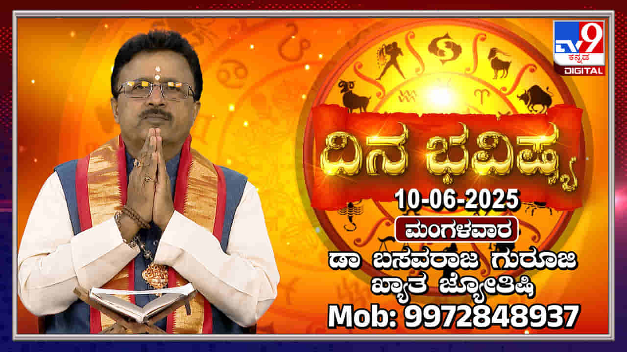 ಜೂನ್ 10ರ ದಿನ ಭವಿಷ್ಯದಲ್ಲಿ ಡಾ. ಬಸವರಾಜ ಗುರೂಜಿ ಅವರು ಎಲ್ಲಾ 12 ರಾಶಿಗಳ ಭವಿಷ್ಯವನ್ನು ವಿಡಿಯೋದಲ್ಲಿ ತಿಳಿಸಿಕೊಟ್ಟಿದ್ದಾರೆ. ಕುಟುಂಬದೊಂದಿಗೆ ಉತ್ತಮ ಸಮಯ ಕಳೆಯುವಿರಿ. ನಿಮ್ಮ ಮಕ್ಕಳ ಮೇಲೆ ಗಮನವಿರಲಿ. ಪ್ರತಿ ರಾಶಿಗೆ ಶುಭ ಬಣ್ಣ, ದಿಕ್ಕು ಹಾಗೂ ಅದೃಷ್ಟ ಸಂಖ್ಯೆಯನ್ನು ಸಹ ತಿಳಿಸಲಾಗಿದೆ.