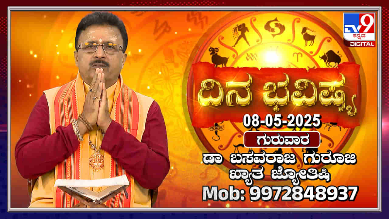ಮೇ 8, 2025 ರ ದಿನದ ದ್ವಾದಶ ರಾಶಿಗಳ ಫಲಾಫಲವನ್ನು ಖ್ಯಾತ ಜ್ಯೋತಿಷಿ ಡಾ. ಬಸವರಾಜ ಗುರೂಜಿ ಅವರು ತಿಳಿಸಿದ್ದಾರೆ. ಪ್ರತಿಯೊಂದು ರಾಶಿಗೂ ಗ್ರಹಗಳ ಶುಭ-ಅಶುಭಗಳ ಬಗ್ಗೆ ವಿವರಿಸಲಾಗಿದೆ. ರಾಶಿಚಕ್ರದ ಪ್ರಭಾವ, ಆರ್ಥಿಕ ಸ್ಥಿತಿ, ಆರೋಗ್ಯ, ವೃತ್ತಿ, ಮತ್ತು ಪ್ರಯಾಣದ ಬಗ್ಗೆ ಮಾಹಿತಿಯನ್ನು ಒಳಗೊಂಡಿದೆ. ಪ್ರತಿ ರಾಶಿಗೂ ಅದೃಷ್ಟ ಸಂಖ್ಯೆ ಮತ್ತು ಮಂತ್ರವನ್ನು ಸೂಚಿಸಲಾಗಿದೆ.