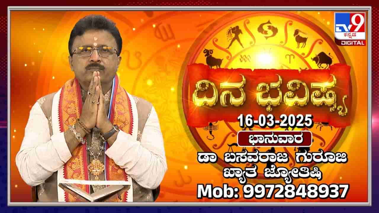 ಮಾರ್ಚ್ 16 ರವಿವಾರದ ದಿನಭವಿಷ್ಯದಲ್ಲಿ 12 ರಾಶಿಗಳ ಫಲವನ್ನು ತಿಳಿಸಲಾಗಿದೆ. ಪ್ರತಿಯೊಂದು ರಾಶಿಗೂ ಗ್ರಹಗಳ ಪ್ರಭಾವ, ಶುಭ-ಅಶುಭ ಫಲಗಳು, ಆರ್ಥಿಕ, ವೃತ್ತಿಪರ ಹಾಗೂ ವೈಯಕ್ತಿಕ ಜೀವನದ ಮೇಲೆ ಪರಿಣಾಮಗಳನ್ನು ವಿವರಿಸಲಾಗಿದೆ. ರಾಹುಕಾಲ, ಶುಭಕಾಲ ಸಮಯಗಳನ್ನೂ ತಿಳಿಸಲಾಗಿದೆ. ಪ್ರತಿ ರಾಶಿಗೂ ಒಂದು ಮಂತ್ರವನ್ನೂ ಸೂಚಿಸಲಾಗಿದೆ.