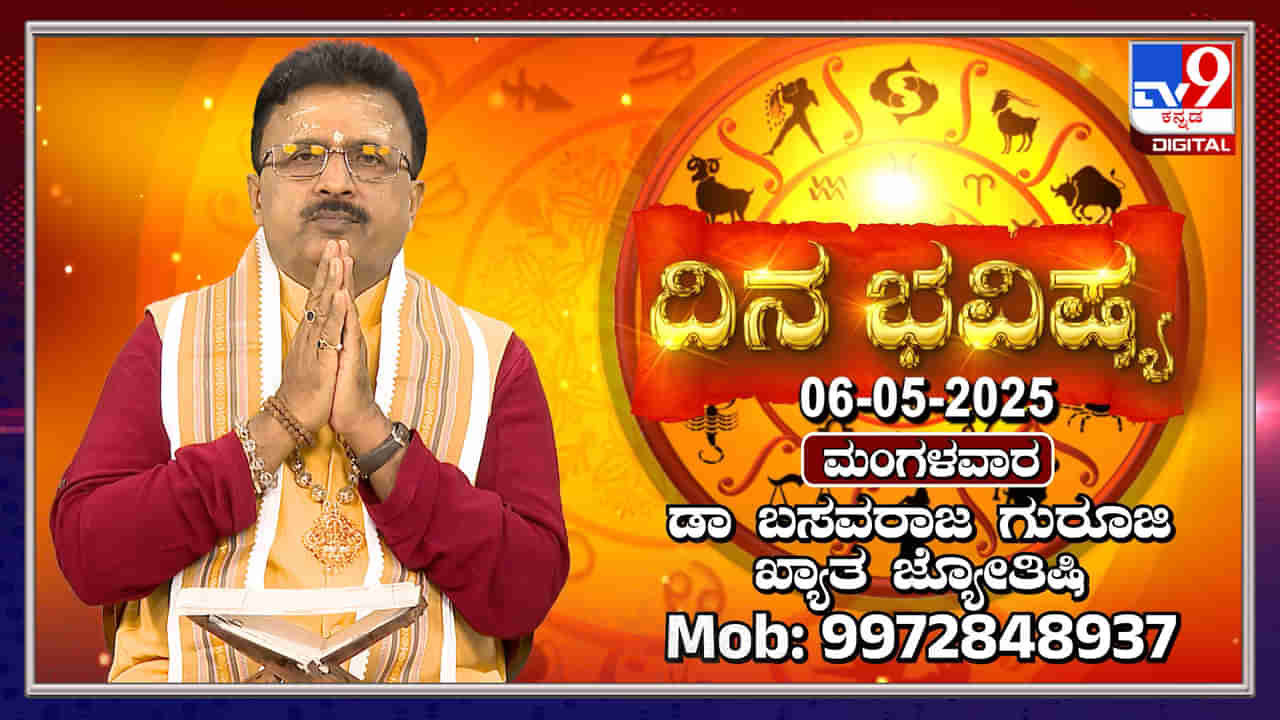 ಮೇ 6, 2025 ರ ದಿನದ ರಾಶಿ ಫಲಾಫಲಗಳನ್ನು ಖ್ಯಾತ ಜ್ಯೋತಿಷಿ ಮತ್ತು ವಾಸ್ತು ಶಾಸ್ತ್ರಜ್ಞ ಡಾ. ಬಸವರಾಜ ಗುರೂಜಿ ಅವರು ವಿಡಿಯೋದಲ್ಲಿ ತಿಳಿಸಿಕೊಟ್ಟಿದ್ದಾರೆ. ಪ್ರತಿಯೊಂದು ರಾಶಿಯ ಅದೃಷ್ಟ ಸಂಖ್ಯೆ, ಶುಭ ಬಣ್ಣ ಮತ್ತು ಜಪಿಸಬೇಕಾದ ಮಂತ್ರವನ್ನು ಸಹ ತಿಳಿಸಿದ್ದಾರೆ. ವಿಡಿಯೋ ನೋಡಿ.